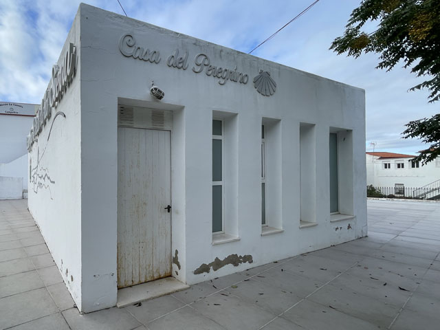 Auf dem Platz (Plaza España), an dem die Bar und ein Kinderspielplatz liegen, steht ein würfelförmiger Bau, der auf der einen Seite öffentliche Toiletten und auf der anderen Seite eine kleine Drei-Betten-Herberge enthält. Nicht sonderlich komfortabel oder gemütlich, aber dem Zweck entsprechend. Und es ist keine umgestaltete Rumpelkammer, sondern eine Herberge, die als solche von der Stadt gebaut und eingerichtet wurde. Tolle Sache. Und die Unterkunft ist sogar umsonst!