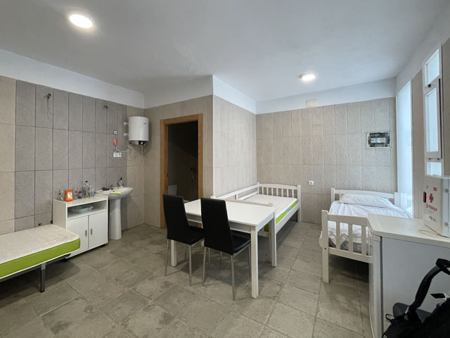 Ich habe deshalb doch gleich angerufen und jemand am anderen Ende gehabt, der mich nicht verstanden hat - und ich ihn auch nicht. Noch während ich eine Nachricht, dass ich angekommen bin, schreibe und übersetze, ruft mir jemand von hinten zu: Cipri, der direkt gegenüber der Bar wohnt. Da man hier in dem Ort reinkommt und dies die einzige Bar ist, kann man sich eigentlich nicht verfehlen. Er hat schnell den Schlüssel geholt und ist mit mir zu der nur wenige Meter entfernten Herberge.
