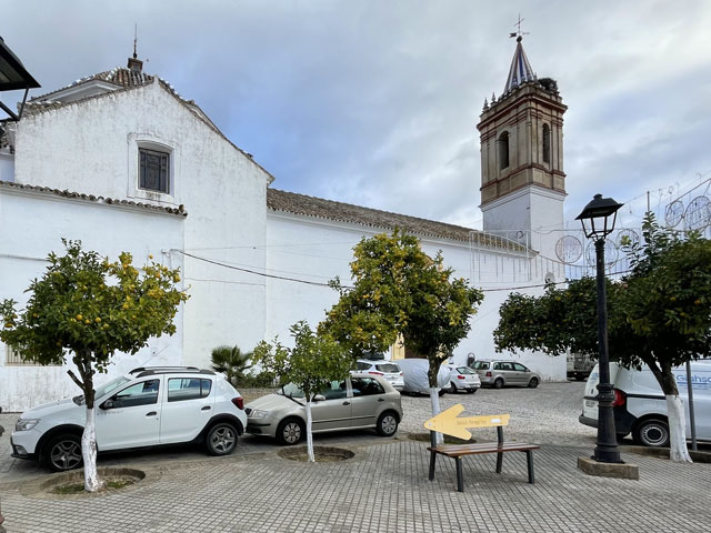 Nerva ist ein nettes Städtchen, das sich von anderen dadurch unterscheidet, dass das Rathaus einen richtigen Turm hat, während die fast daneben stehende Kirche nur mit dem üblichen Giebel statt Turm aufwarten kann. Schön anzusehen sind die bunten Keramikbilder, die hier die Straßenschilder ergänzen. Da Nerva der einzige Ort auf der heutigen Etappe ist, bin ich da nochmal eingekehrt und dann weiter den Camino-Schildern in Richtung Campofrío gefolgt.