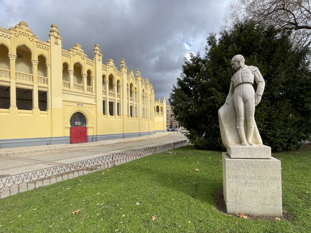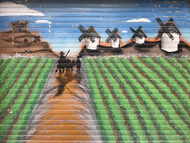 Nicht weit hinter der Stadt ist ein großes Gewerbegebiet längs der Autobahn, wo den Holzkisten neben den Hallen nach zu urteilen viele Großhändler von Obst und Gemüse ansässig sind. Der Weg verläuft um das Gewerbegebiet herum und erst ganz am Ende kommt man wieder auf die parallel zur Autobahn verlaufende Service-Straße. Als ich nun hinter den Hallen entlanglief, begann es richtig zu gießen und kein Fluchtweg und kein Unterstand waren gegeben. Wäre ich mal durch das Gewerbegebiet gelaufen, dann hätte sich bestimmt eine Möglichkeit zum Unterstellen gefunden, vielleicht sogar eine „Cantina“. So habe ich erst am Ende des Gewebegebietes eine Halle mit offener Tür gefunden, durch die ich einfach mal geschlüpft bin, um den dicksten Regen abzuwarten. Die Halle gehörte zu einer Firma, die Roboter baut. Drinnen waren ein paar Männer damit beschäftigt, einen speziellen Container herzurichten. Dem vermeintlichen Chef habe ich zugewinkt und zu verstehen gegeben, dass ich da nur ein paar Minuten im Trocknen stehen will. Statt mich wegzujagen, hat er gefragt, ob ich Wasser oder ein Bier haben will - dann hat er aber leider trotz intensiver Suche kein Bier im Kühlschrank gefunden. Trotzdem sehr nett. Als der Regen etwas nachließ, bin ich weitergelaufen, denn ewig nass rumzustehen bringt ja auch nichts. Der Weg führte jetzt auf der asphaltierten, aber sehr löchrigen Servicestraße neben der Autobahn. Da fuhren mehr Autos als erwartet, vermutlich weil die Straße zugleich eine Zufahrt zum Gewerbegebiet ist. Da musste ich immer aufpassen, dass ich nicht gerade neben einem mit Wasser gefüllten Schlagloch oder einer Pfütze stehe, wenn ein Auto kommt. Plötzlich hält neben mir ein von hinten kommendes Auto mit dem Firmenchef, bei dem ich mich untergestellt hatte. Der wollte mich mitnehmen, was ich aber dankend abgelehnt habe, weil das unsportlich ist und weil ich seinen schönen Lexus nicht nass und schmutzig machen wollte. Wie ein Lob für diese Tapferkeit riss plötzlich der Himmel auf und der Regen war vorbei. Ein Regenbogen signalisierte zudem, dass es jetzt auch etwas Sonne geben wird. Es blieb auch bis zum Ziel trocken, aber der Wind nahm stark zu und stellenweise kam ich kaum vorwärts. Der Sturm hat aber dafür gesorgt, dass die Sachen am Leib schnell getrocknet sind. Sogar die Schuhe samt Inhalt waren am Nachmittag fast trocken. Der Weg führte im Wesentlichen bis zum Schluss entlang der Autobahn, bzw. ich bin da weitergelaufen, auch wenn der ausgeschilderte Weg einen Bogen durch die Felder machte. Nach Umwegen war mir bei dem Wetter nicht zu Mute und es war zu sehen, dass auf den aufgeweichten Feldwegen große Pfützen stehen. An einer Stelle hat neben mir ein Auto gehalten und der mit drei Hunden aussteigende Fahrer wollte mich ein paar hundert Meter zurück schicken, weil der Weg ein Stück weiter gesperrt ist. Aber auch zum Zurücklaufen hatte ich keine Lust. Deshalb habe ich trotz seines Kopfschüttelns den Hinweis ignoriert und bin weiter. Tatsächlich war da ein Stück des Weges abgesperrt, vermutlich weil man da ein Regenwasserbecken neben der Autobahn baut. Das Stück ließ sich aber auf den angrenzenden Feldern gut umgehen. Schlamm hatte ich eh an den Schuhen, da hat das nichts ausgemacht. Etwa halb eins war ich in Albacete und ziemlich enttäuscht, dass die recht große Stadt außer ein paar wenigen schönen Fassaden nichts zu bieten hat. Ich hatte wenigstens einen mittelalterlichen Stadtkern erwartet, aber es gab nichts dergleichen. Da, wo ich in die Stadt reinkam, ist ein recht neues, aber ziemlich verdrecktes Wohngebiet mit zwielichtigen Gestalten vor den Haustüren. Gegenüber ist eine Müllhalde, in der gerade zwei Polizisten dabei waren, die aus Müll gefertigten Behausungen zu kontrollieren. In Richtung Innenstadt wurde es dann ordentlicher, aber wie gesagt leider nicht schöner. In Albacete bin ich zunächst ins Rathaus gegenüber der Kathedrale um nach der Herberge zu fragen. Dort hat man mich in das „Centro de Atención Integral a Personas sin Hogar“, also das „Zentrum für die umfassende Betreuung von Obdachlosen“ geschickt, wo sich auch die Herberge befinden soll. Das ist zehn Minuten entfernt im Südosten der Stadt und liegt fast an dem Weg, den ich gekommen bin. In diesem Zentrum gibt es Schlafgelegenheiten für Obdachlose, aber auch kostenfreie Duschmöglichkeiten, eine Essenausgabe und eine Wäscherei. Außerdem steht der Flur voller Spinde, in denen die Obdachlosen ihre Sachen verstauen können. Im Haus stand auch eine ziemlich lange Schlange auf dem Flur, vermutlich um zu duschen. Der Pförtner hat mir erklärt, dass es auch zwei Betten für Pilger, Wanderer etc. gibt (weshalb das Zentrum auch gelistet wird, wenn man nach „Herberge in Albacete“ sucht). Diese zwei Betten werden aber erst um 16.30 Uhr vergeben und können nicht reserviert werden. Bis dahin waren noch drei Stunden Zeit, die ich in einem Einkaufszentrum im KFC und mit einem Stadtbummel bis zur Stierkampfarena verbracht habe. Für dringende Angelegenheiten habe ich dieses Mal leider kein Hospital mit einer Tür für „Urgencias“ gefunden, aber eine „Toilette für Professoren“ in einer offen stehenden Schule. Um ehrlich zu sein: auf einem Professoren-Klo sitzt es sich auch nicht besser als auf einem normalen Klo. Um zwanzig nach vier war ich wieder am Obdachlosenzentrum und habe erfahren, dass die zwei Betten schon vergeben sind. Ganz sicher nicht an Pilger. Aber wenn da zwei wirklich Bedürftige eine Schlafstätte gefunden haben, dann soll mir das Recht sein. Der Herr sagte mir noch, dass ich es um halb zehn nochmal probieren könne, denn manchmal bleibt ein Bett frei, weil jemand doch draußen übernachtet. Das fand ich aber alles nicht so verlockend, weshalb ich das Smartphone gezückt, booking.com aufgerufen und das letzte 44 €-Zimmer im Hotel „Cardinal“ gebucht habe. Das nicht weit weg vom Plaza de la Mancha gelegene Hotel erwies sich dann als deutlich 