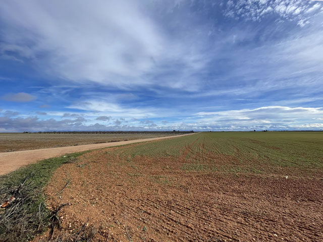 Heute standen etwa 36…38 km an, weil von Albacete aus erst in La Roda die nächste Herberge ist. Da habe ich mich vorgestern per WhatsApp angemeldet und gleich dazu geschrieben, dass ich kein Spanisch spreche. Die Dame (?) hat mir daraufhin mitgeteilt, dass ich bei meiner Ankunft anrufen und nur „Peregrino“ (Pilger) sagen soll, dann kommt jemand und schließt mir auf. Die Quartierfrage war also geklärt und damit keine Eile geboten.