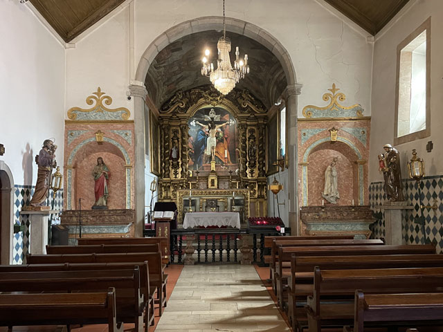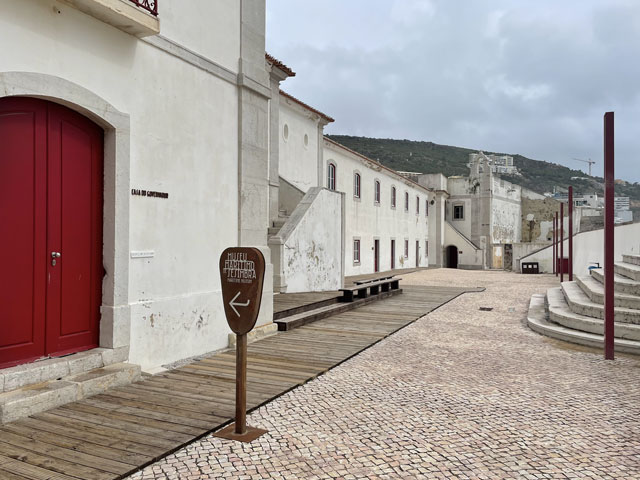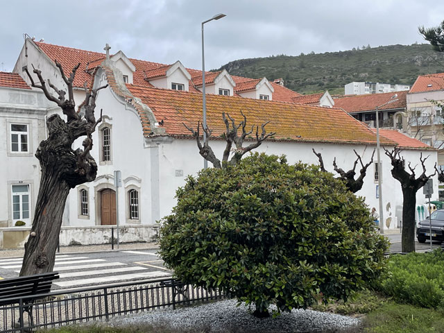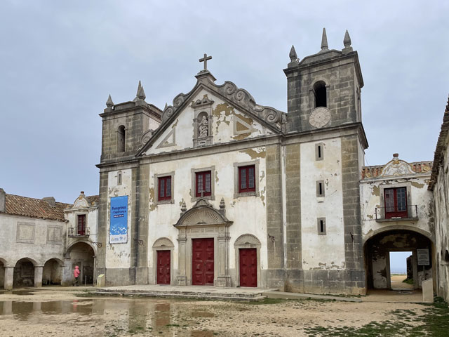 Die Burg von Sesimbra, die ich bislang wegen Regen oder Nebel nur selten zu sehen bekam, war mein erstes Besichtigungsziel. Am Ende der Straße, die von meinem Quartier wegführt, sind zwei Zugänge zur Burg, ein kurzer, steiler Aufstieg für Fußgänger und die Straße, die halbwegs moderat auf der Nordseite des Burgberges nach oben führt. Bergauf habe ich den steilen Aufstieg gewählt, der gar nicht so leicht zu bewältigen war, weil die glatten Pflastersteine noch vom Regen nass und rutschig waren. Oben angekommen, habe ich über den guten Zustand der Befestigungsanlagen gestaunt. Ich habe dann aber gelesen, dass die in ihren Anfängen aus den 9. Jahrhundert stammende und immer wieder erweiterte Burg schon mal bis zur Ruine verkommen war und ab 1933 aufwändig saniert wurde. Jetzt sitzt wieder jede Zinne in voller Schönheit an ihrem Platz auf der Mauer. Nur eine unschöne Lücke gibt es in der Mauer - dort wo die Straße auf das Burggelände führt. Hier hat man einfach ein Stück Mauer entfernt oder nicht wieder aufgebaut. Erfreulicherweise kann man die gesamte Mauer auf dem Wehrgang ablaufen. So kommt man auch an einem alten Friedhof auf dem Burggelände vorbei und landet an der Nordspitze beim eigentlichen Castello, einem vom Burggelände nochmal durch eine Mauer abgetrennten Bereich, in dem der Burgherr mit seiner Familie wohnte. Mitten auf dem Gelände steht eine außen sehr schlichte, aber innen recht sehenswerte Kirche, die erfreulicherweise offen stand. Das ist wieder eine, die innen ringsum mit blauen Kacheln versehen ist, auf denen biblische Motive dargestellt sind. Natürlich habe ich von der Burgmauer nicht nur den Blick auf die eigentliche Stadt am Meer genossen, sondern auf der anderen Seite der Burg auch nach meiner letzten Unterkunft Ausschau gehalten. Die konnte man ganz prima erkennen und man hätte auch sehen können, ob da jemand im Pool ist. War aber keiner! Von der Burg runter bin ich die Zufahrtsstraße auf der Nordseite bis zu meinem Ausgangspunkt und dann einen Fußweg auf der Südseite des Burgberges runter in die Stadt. Da gibt es etwas Altstadt mit ein paar netten Gassen und vielen Geschäften, umringt von bedingt sehenswerten Neubaugebieten. Unten am Wasser bin ich ganz unerwartet auf eine weitere Festung gestoßen: das Forte de Santiago. Das steht direkt am Stand und hat zum Wasser hin richtige Festungsmauern mit Wachttürmchen. Zur Stadt hin besteht die Befestigung darin, dass die dorthin zeigenden Wände der Festungsbauten keine oder sehr hoch angeordnete Fenster haben. Insgesamt war die Befestigung aber nicht so, dass sie einem Angriff von Piraten oder fremden Heeren standgehalten hätte, aber ein paar betrunkenen Söldnern hätte sie sicher getrotzt. Die Gebäude dieser kleinen Festung beherbergen das Museum von Sesimbra, das heute am Montag leider geschlossen ist. Von der Festung aus ging es zunächst ein Stück auf der Straße westwärts, dann auf Holzwegen am Stand an ein paar Gaststätten vorbei und schließlich wieder auf der Straße vorbei an den Hafenanlagen. Da gab es zunächst den kleinen Hafen einer Reparatur-Werft, dann den Fischereihafen und schließlich einen großen Sportboothafen. Aber nichts, wo ein Frachtschiff hätte anlegen können. Am Sportboothafen ist die Straße eigentlich zu Ende, aber es ist möglich und erlaubt, den ab hier bergauf führenden Wanderweg (GR 11) auch mit dem Auto zu befahren. Der Weg umkurvt die Reste einer weiteren Festung, die jetzt die Basis eines kleinen Leuchtturmes sind, um dann permanent aufwärts zu führen, vorbei an den Hinterlassenschaften eines Steinbruchs, die den Weg noch deutlich überragen. Endlich oben angekommen, stößt man auf die Fernstraße EM 569, die zum meinen heutigen Ausflugsziel, dem Kap (Cabo) Espichel führt. Ich bin aber nicht lange auf der Straße geblieben, sondern bald mit dem Wanderweg GR 11 nach links in die Wildnis abgebogen, um der Straße mit gut hundert Metern Abstand westwärts zu folgen. Dabei bin ich an einer umzäunten Antennenanlage vorbeigekommen, die auch gut als Landeplatz für Ufos durchgehen würde. Hinter Azóia stößt der Weg dann wieder auf die Fernstraße, der man nun noch etwa 1,5 km folgen muss, begleitet von einem nur wenige Meter über dem Boden verlaufenden, überdachten Aquädukt. Auf diesem Stück fing es dann an zu regnen, immerhin zwei Stunden später als angedroht. Kurz nach vier war ich am Cabo Espichel, wo es zwei Sehenswürdigkeiten gibt: einen markanten Leuchtturm, den ich mir nur von weitem angeschaut habe, und die Wallfahrtskirche „Nossa Senhora do Cabo“, die montags leider nicht zu besichtigen ist. Noch viel eindrucksvoller als die äußerlich schon ziemlich abgeschrammte Kirche sind zwei lange, zweigeschossige Anbauten auf jeder Seite, die vor der Kirche einen langen, rechteckigen Platz flankieren. Diese „Pilgerhäuser“ genannten Bauten wurden zwischen 1715 und 1760 gebaut, um die vielen Wallfahrer unterzubringen und zu versorgen. Das Untergeschoss mit Arkaden enthielt Geschäfte und im Obergeschoss waren die Schlafsäle. Da hat man sicher ein paar hundert, wenn nicht tausend Pilger untergebracht. Und das Aquädukt diente wohl dazu, die Pilger mit Wasser zu versorgen. Zu beiden Seiten der Kirche sind Durchgänge, durch die man auf einen großen Platz direkt am Kap gelangt. Hier hat man an der Kante der Steilküste sogar mal ein Geländer angebracht, damit da nicht zu viele herunterpurzeln. Außerdem stehen da Schilder, die vor dem instabilen Felsen und dem starken Wind warnen. Für heute gab es auch wieder in der Wetter-App eine „Schwere Küstenunwetterwarnung“ mit Wellen von 5…6 und vereinzelt 11 Metern Höhe. Mit dem Regen war zwar Wind aufgekommen, aber so schlimm sah es auf dem Wasser gar nicht aus. Nördlich des Kaps schlugen ein paar einzelne, hohe Wellen ans Land, aber das war überhaupt nichts gegen den Wellengang am Fischerweg. Für den Fall, dass es da rings um die Wallfahrtskirche was zu besichtigen gibt und es d
