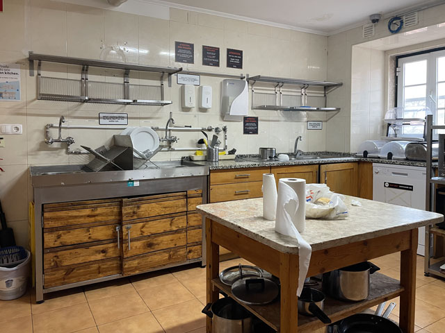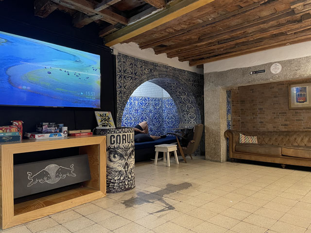 Ich habe wunderbar geschlafen. Wir waren nur zu zweit im 6-Bett-Zimmer (zwei Einzel- und zwei Doppelstockbetten). Mein Companion war Guilherme, ein junger portugiesischer Immobilienmakler aus Portimão, der bei RE/MAX offenbar noch nicht so reich geworden ist, dass er im x-Sterne-Hotel übernachten kann. Da er wohl schon ein paar Nächte in der Jugendherberge war, wusste er, dass es da trotz des Radiators nachts recht kühl wird und hat sich deshalb gleich mit Jeans und Pullover ins Bett gelegt. So verschieden sind die Menschen: Ein paar Mädels kamen dafür zum Frühstück im Schlafanzug. Das Frühstück war übrigens recht gut. Neben diversen Süßkram gab es auch Wurst und Käse, was bei mir Bewertungskriterium ist. Neben dem durchaus trinkbaren Kaffee aus einer Thermophore konnte man sich auch kostenfrei Espresso und ähnliches aus dem Automaten ziehen. Da ich keine Eile hatte, habe ich diese Rahmenbedingungen genutzt und sehr ausgiebig gefrühstückt.