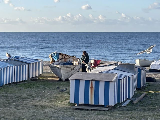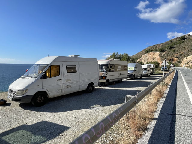 Soweit es ging, bin ich am Ufer gelaufen, zunächst auf einer Straße, dann auf einer für Fußgänger hergerichteten Traverse um die Felsen herum und dann auf einem Trampelpfad den Berg hoch. Das war schön, zumal ein paar Wellen aufkamen und es neben einem immer mal platschte. Beim Aufstieg ging es vorbei an ein paar wild aufgestellten Zelten, deren Bewohner aber nicht zu sehen waren. Die haben sich zumindest ein schönes Plätzchen mit unverbautem Blick aufs Meer und auf die Urbanisationen an den gegenüber liegenden Berghängen ausgesucht. Bei den vielen Trampelpfaden, die es hier wieder gab, musste man aufpassen, dass man nicht unbedingt den ganz dicht an der Felskante erwischt. Einen tollen Blick zurück und später auch nach vorn auf Marina del Este hat man von jedem der Wege gehabt. Marina del Este ist eine ganz moderne Siedlung, die man um einen Yachthafen herum gebaut hat. Sehr schön anzusehen und vermutlich auch ziemlich teuer. Nach reichlich genossenen Rundumblicken ging es wieder bergab bis nach La Herradura, was wieder einer der üblichen Orte am Strand war, nur nicht so groß und dadurch ganz nett. So weit wie möglich bin ich wieder am Strand gelaufen, aber am Ende der Uferpromenade musste ich erst eine Treppe und dann die sich nach oben schlängelnde Straße nehmen, um auf halber Höhe des Berges auf die N-340 zu kommen. Auf der ging es durch einen über 600 Meter langen Tunnel, was zwar gut zu laufen, aber wieder unheimlich laut war. Im Tunnel ist ein Knick, so dass man nicht sehen konnte, ob vor einem ein Auto einfährt. Aber man hat es sofort gehört, und zwar gleichbleibend laut und noch bevor man den Lichtkegel der Scheinwerfer an der Tunnelwand gesehen hat. Das ist kurios, denn bei unserem alten Röhrenradio war nach dem Anschalten immer gleich die Skalenbeleuchtung an und erst später kam der Ton. Der Routenplaner hat dann wieder alle möglichen Vorschläge gemacht, wie man laufen sollte, um die Straße zu meiden. Das waren Wege, die weit ins Hinterland und über 300 Meter hoch führten, oder welche, die bei näherem Hinsehen nicht einmal Trampelpfad-Qualität hatten. Ich habe diese alle ignoriert und bin auf der Straße geblieben, wo es sich ganz prima lief und wo man fast immer einen tollen Blick aufs Meer hat. Da sieht man schöne, kaum erreichbare Strände, einladende Häuser dicht am Wasser oder an den Berghängen, alte Wachttürme usw. An vielen Stellen entlang der Straße oder unten am Ufer standen Wohnmobile, aber etwa fünf Kilometer vor Nerja traten die gehäuft auf. Die Windungen der früheren Straße hat man an vielen Stellen zum Parken freigegeben. Hier waren diese Straßen lückenlos mit Wohn-mobilen oder Campingbussen vollgestellt. Bei manchen hatte man den Eindruck, dass die schon Jahre dort stehen und ohne fremde Hilfe gar nicht mehr wegkommen. Beim Näherkommen hat sich dann die Vermutung bestätigt, dass da Hippies hausen. So hat man diese Klientel zumindest früher bezeichnet. Da wurde Gitarre gespielt, palavert und gefeiert und mittendrin hat ein italienischer Löffelschnitzer seine Produkte angeboten. Hier habe ich am Straßenrand auch den ersten Rucksackträger getroffen: Thomas aus der Schweiz. Der ist bis hier getrampt und will nun weiter nach Málaga. Da hätte man gut ein Stück zusammen laufen können. Aber er war gerade im Gespräch mit einem Inder, der mit zwei Einkaufsbeuteln in der Gegenrichtung unterwegs war. Die lehnten beide an der Leitplanke und haben sich vom Verkehr nicht stören lassen. In Maro, kurz vor Nerja, gibt es eine große, angeblich sehr sehenswerte Tropfsteinhöhle, die erst Ende der 50er Jahre entdeckt wurde. Die wollte ich mir gern anschauen. Aber als ich an der Fußgängerbrücke ankam, die über die Autobahn dorthin führt, musste ich lesen, dass die Höhle im Winter um 15.30 Uhr schließt und dass eine Stunde vorher der letzte Einlass ist - das war vor zwei Minuten. Ich bin trotzdem noch schnell hin, aber die Kasse war schon geschlossen und die haben mich nicht mehr reingelassen. Schade. Ich bin wieder zurück auf die andere Seite der Autobahn und nach Nerja hinein gelaufen, was dann doch noch ein ganzes Stück war. Im ersten Supermarkt habe ich mich schon mal für den Abend versorgt. Das war ein riesiger „Mercadona“ auf Stelzen über einem noch viel größeren Parkplatz. Aber das Angebot im Markt war sehr überschaubar. Die Regale standen so weit auseinander, dass man da auch gut mit dem Auto alles hätte abfahren können. Und die Bestückung der Regale war wie früher im Osten, wo der gleiche Artikel auf einem Meter Regalbreite nebeneinander aufgereiht war. Ab da waren es noch gut zwei Kilometer bis zu meinem Quartier. Ich habe auf dem Weg dorthin noch einen Abstecher zum „Balcon de Europa“ gemacht. Das ist eine Aussichtsplattform auf einer runden, ins Meer hinaus ragenden Gaststätte. Ich war auf die Minute genau um 18.22 Uhr zum Sonnenuntergang dort und habe auch noch einen golden gefärbten Himmel gesehen, aber das Ereignis selbst fand hinter Häusern auf einer Klippe statt und ließ sich nur erahnen. Das 18-Euro-Hostel „Be Happy“, in dem ich nächtigen werde, ist ganz ordentlich. Es gibt nur zwei Zimmer. Ich bin in einem 8-Bett-Zimmer, in dem mit mir 5 Personen sind. Da der Wirt bei meiner Ankunft zufällig da war, konnte ich sogar noch mein Bett von oben nach unten tauschen. Der war sogar so nett und hat mir mein Wunschbett bezogen, da nur die vergebenen Betten mit Bettwäsche versehen waren. Prima. Bett und Bettwäsche werde ich jetzt gleich ausprobieren. |
