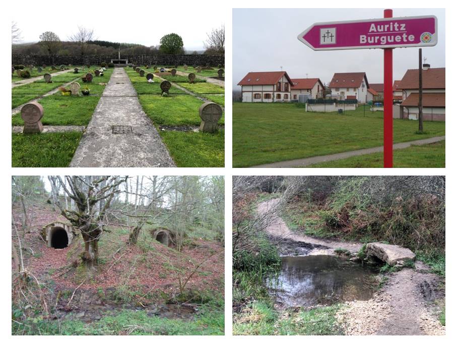 In der Herberge im Kloster Roncesvalles habe ich sehr gut geschlafen. Dank der Trennwände war in dem Saal mit ca. 40 Betten kein Furzen oder Schnarchen zu hören. Die Französin über mir aus Carcassonne (ich beneide sie!) hat zwar kurz probiert zu schnarchen, hat das aber nicht hinbekommen. Gegen vier wurde ich vom Harndrang wach, aber nicht vom eigenen, sondern von dem einiger Mitschläfer, welche die Klotür scheppernd ins Schloss fallen ließen, statt die Klinke zu benutzen. Ich hab dann bis zum Wecken mittels Lichtanschalten noch ein bisschen geschlummert und schon mal mit der Leselampe an der Stirn meine Tabletten sortiert. Punkt sechs ging das Licht an und dann ging das Waschen, Packen usw. los. Man hätte hier Frühstück buchen können, das aber nur aus Süßkram nebst Kaffee bestand und auch erst ab 7 Uhr in einer der umliegenden Gaststätten serviert wurde. Ich habe mich mit einem hervorragenden Kaffee aus dem Automaten begnügt und war schon drei viertel sieben in der Spur. Es ging auf einem sehr guten, ebenen Weg ins Nachbardorf, wo um diese Zeit schon ein Bistro offen und mit Pilgern besetzt war. Richtig Hunger hatte ich nicht, trotzdem habe ich mal das Buffet inspiziert. Das einzige Nicht-Süße war ein halbes Baguette mit einer großen Käsescheibe und einem Fischfilet darauf. So richtig konnte ich mir nicht vorstellen, wie das schmeckt und morgens kurz nach sieben wollte ich das auch nicht ausprobieren. Der Wegweiser zum Friedhof sah aus wie bei uns die der Soldatenfriedhöfe. Den kurzen Abstecher habe ich gemacht und war beim Blick durchs Tor auch tatsächlich der Meinung, das wäre eine Kriegsgräberstätte. Aber dann habe ich gesehen, dass die von weitem einheitlich aussehenden Grabsteine auf den regelmäßig angelegten, ebenen Grabstellen sehr individuell gestaltet waren. Das war ein ganz normaler Dorffriedhof, wie ich ihn aber noch nie gesehen habe. Die einzelnen Kurven des Weges lassen sich im Reiseführer nachlesen, hier kann zusammengefasst gesagt werden, dass es permanent auf und ab ging, zwischendurch wieder bis auf 922 Meter. Lange Zeit hingen die Wolken noch tief in den Bergen, aber allmählich verzogen sie sich und nach dem nächsten Pass war auch mit der feuchten Luft Schluss und man konnte den Anorak einpacken. Gegen 10 Uhr kam dann die Sonne raus und auch der Pullover konnte im Rucksack verstaut und gegen Sonnenbrille und Schirmmütze getauscht werden. Jetzt wurden mir erst die Vorzüge des Regenwetters bewusst. Am Tag zuvor, als ich Pullover und Anorak am Leib und den Poncho oben drüber statt im Rucksack hatte, war dieser wesentlich leichter! Und auch Nebelwetter hat seinen Vorteil. Bei der Pyrenäen-Überquerung war links und rechts nichts zu sehen und wegen der feuchten Luft hat man nur mal kurz das Smartphone rausgeholt und raufgeschaut, um die Technik zu schonen. Da konnte man sich auf den Weg konzentrieren. Bei Sonnenschein kann man sich beim im Laufen die Umgebung anschauen und zudem noch auf dem Smartphone rumhantieren. Das führt leicht zu Stürzen, was ich ausprobiert habe. Zum Glück war es auf Beton, das hinterlässt keine Flecken. Und die Kreditkarte in der verschließbaren Beintasche hat erfolgreich die Kniescheibe geschützt. Ich hoffe, auf der Karte ist jetzt noch was drauf, sonst muss ich die nächsten Wochen darben. Egal auf welcher Höhe der Weg verlief, die Schlammlöcher wurden immer häufiger. Und die zwischenzeitlich ertrampelten Umgehungen unterschieden sich von ihnen nur in der Einsinktiefe. Mit Stilettos hätte man hier bis ins Erdinnere vordringen können. Zum Schlamm gesellte sich bald glitschiges Gestein (wie schreibt man das?). Für einen Spezialisten der Plattentektronik wäre das eine Fundgrube, für den profanen Wanderer oder den Pilger stellte sich indes die Frage, warum denn die Gesteinsschichten nicht einfach übereinander liegen, sondern senkrecht oder zumindest schräg stehen und das Laufen extrem behindern. Man hätte den Jakobsweg gehen sollen, bevor die Pyrenäen und die spanischen Vorgebirge, durch die ich mich gerade kämpfe, gefaltet wurden. Irgendwann nahm auf dem Weg der Abwärtstrend zu, was aber wegen der oben genannten Plattentektonik nicht zur Freude ausartete. Erst kurz vor dem Etappenziel, Zubiri (nicht Zuchini!) wurde der Weg zivilisiert. Die Brücke, die über einen kleinen Fluss in den Ort führt, ist ein echter Hingucker. Der Ort selbst ist auch sehr ansehnlich und besticht vor allem durch mehrere Bars. Eine, die mit einem kleinen Kram-, Bäcker- und Fleischerladen auf gut 10 Quadratmeter kombiniert ist und Sitzgelegenheiten im Freien bietet, ist das Ziel der meisten Pilger. Hier habe ich ein köstliches warmes (!) Sandwich mit Käse und Schinken aus der Bar mit einer zuvor in der Alimentation erworbenen Bierbüchse kombinieren können. Köstlich! Hier, nach 22 km wäre lt. Reiseführer Etappenziel, aber da ich mich noch nicht so richtig schlapp fühlte, das Wetter besser als angekündigt und der Nachmittag erst angebrochen war, habe ich mich entschlossen, noch ein Stück weiter zu laufen. Wie vor der Kneipe erzählt wurde, waren eh alle Herbergen voll. Hier muss man aber wissen, dass es neben den sehr preiswerten (und deshalb auch sehr beliebten) kommunalen und kirchlichen Herbergen unzählige private gibt (die nicht unbedingt viel teurer sind), und in größeren Orten auch Pensionen und Hotels. Da kommt man oft noch unter, wenn die Herbergen voll sind. Ich bin also noch ein Stück weiter auf der nachfolgenden Etappe gelaufen und habe die 30 km komplett gemacht. Auf der Karte sah das harmlos aus, nämlich immer am Fluss entlang. Aber hier in Spanien sagt man sich „warum einen flachen Uferweg einrichten, wenn es auch über Bergpfade geht?“ Vorbei an einem Bergwerk mit großen Halden und einer Fabrik (nicht wie vermutet eine Zementfabrik, sondern ein Magnesitwerk) ging es am Berghang auf und ab, durch ein kleines Dorf und vorbei an einer trutzigen, aber leider geschlossenen Kirche mit einem klei