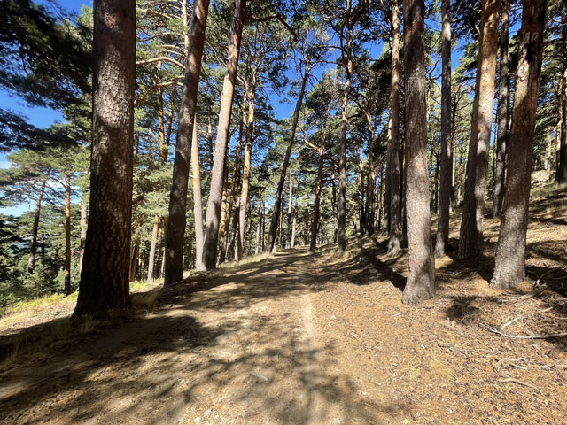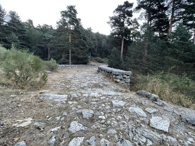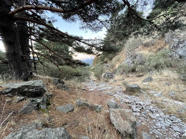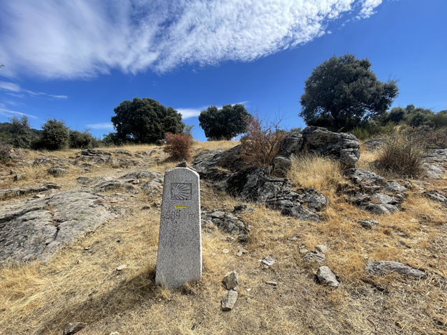 Egal, inzwischen war es hell und ich habe den Rest bis hoch auf den Pass gut allein hinbekommen. Während ich da noch mühevoll Schritt für Schritt hochstapfte, schrieb mir Koo, dass er schon auf dem Abstieg ist. Ich habe mir, oben angekommen, erstmal auf die Schulter geklopft. Diese halbe Etappe lag mir schwer im Magen, seitdem ich mich mit dem Camino de Madrid beschäftigt habe. Dass ich die geschafft habe, hat mich froh und stolz gemacht. Und nun hatte ich gar keine Eile, nach Segovia bzw. noch ein Stück weiter in die Herberge zu kommen. Das ist eine 40 Betten-Herberge und außer uns Vieren wird da kaum einer sein.
