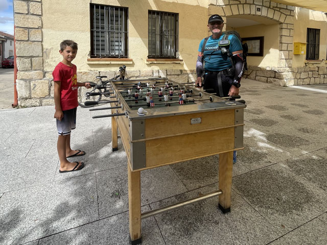 In Aña, einem Dorf auf der Mitte des Weges, in dem ich mich mit den Italienern getroffen habe, hat Sandro mit einem kleinen Jungen Tischfußball gespielt, weil der keinen Partner hatte.