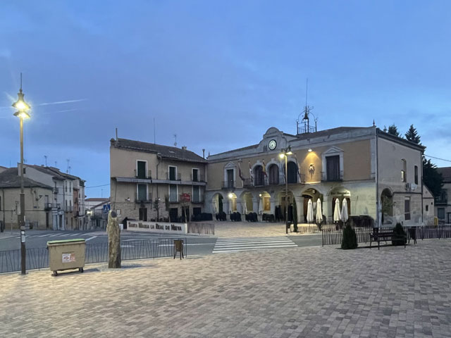 Ich bin heute gegen sieben Uhr, kurz nach den anderen Dreien aufgebrochen. Da war es nicht nur dunkel, sondern auch ziemlich kalt. Weil auf der Fernstraße, der ich bis in den nächsten Ort folgen musste, inzwischen der Berufsverkehr einsetzte, wollte ich nicht am Straßenrand halten und meinen Rucksack nach einer Jacke absuchen. Das habe ich erst in dem Dorf mit dem klingenden Namen „Santa María la Real de Nieva“ gemacht.