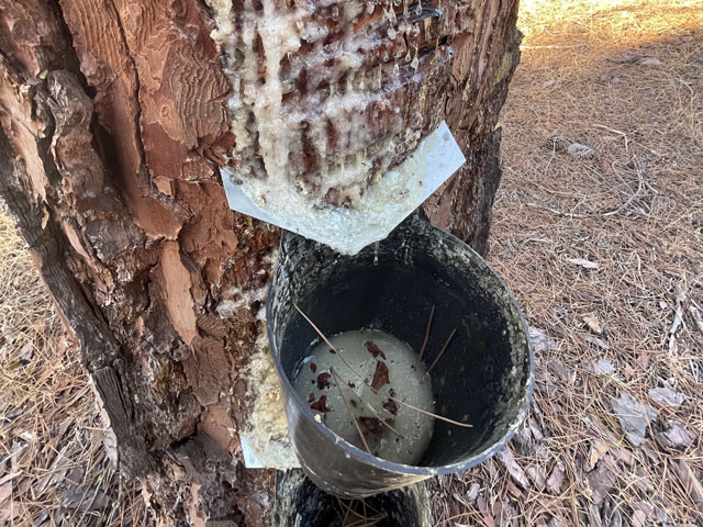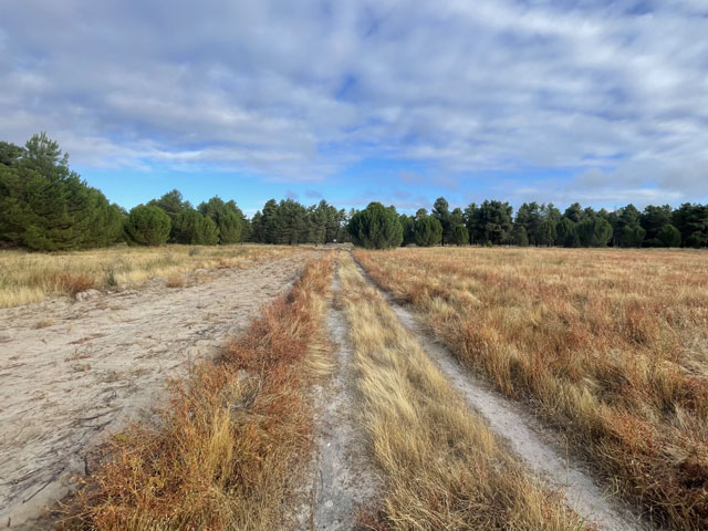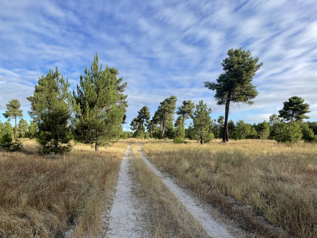 Von Nieva bis Nava de la Asunción ging es fast ausschließlich durch lichten Kiefernwald, in dem wieder fast alle Bäume „angezapft“ waren, d.h. mit Kerben und angehängten Töpfen versehen, wobei nicht erkennbar ist, ob da wirklich noch Harzgewinnung betrieben wird, oder ob die Bäume so zurückgelassen wurden. Ein Stück weiter waren die Bäume von den Töpfen befreit und man konnte sehen, wie dort die Baumrinde wieder zusammenwächst, aber deutliche Narben hinterlässt.