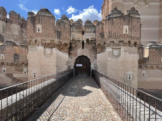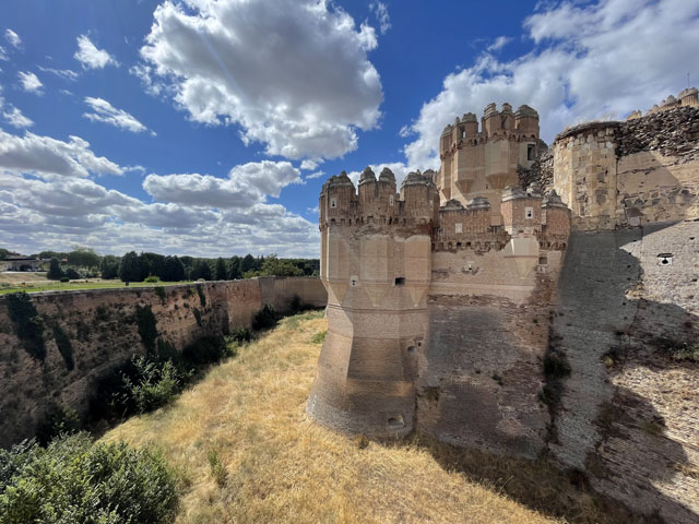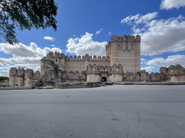 Auf Coca habe ich mich schon lange gefreut, weil ich die tolle Burg in einigen Videos gesehen habe. Als ich gestern auf der Website von Coca gelesen habe, dass die eigentlich jeden Tag, also auch montags offen ist, war ich ganz euphorisch, aber dann habe ich gelesen, dass man sich 48 Stunden vorher anmelden muss. Aber von außen wollte ich sie mindestens bestaunen. Zeit dafür war genug, denn als ich um drei im Ort ankam, waren alle Geschäfte zu und Leute, die ich gefragt hatte, sagten mir, dass der Supermarkt erst um fünf wieder öffnet. Also hieß es, sich zwei Stunden die Zeit zu vertreiben, denn ich musste unbedingt hier einkaufen, weil in dem Dorf mit der Herberge keine Möglichkeit dafür besteht.