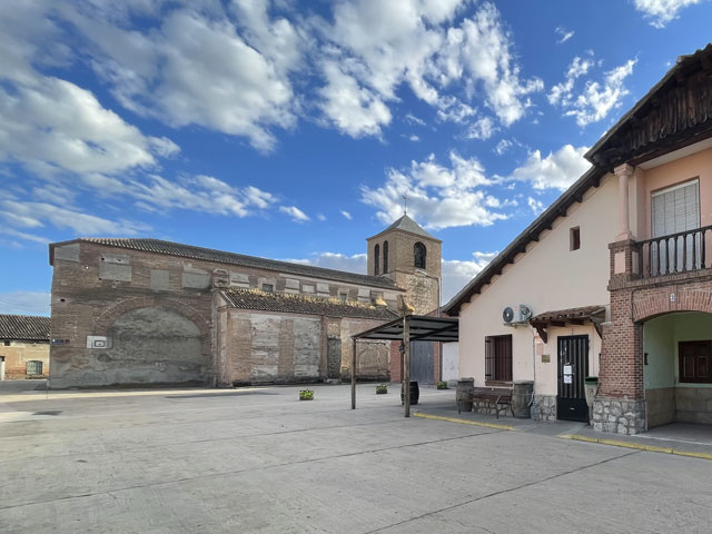Da war ich eigentlich mit Sandro und Margit zum Morgenkaffee verabredet, aber die einzige Kneipe im Ort hatte noch geschlossen. Im nächsten Ort, Nieva, sah es genauso aus. Erst 11 km weiter, in Nava de la Asunción, konnte ich meinen Morgenkaffee trinken. Da war es halb zwölf. Damit sich der Kneipenstopp lohnt, habe ich gleich noch das Mittagessen angehängt: ein Stück Tortilla und ein kaltes Getränk.