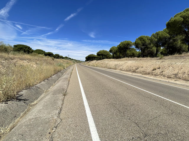 Von Valdestillas bis zu meinem Zielort, Puente Duero ging es entlang der Straße, erst auf dem Seitenstreifen, dann auf einem parallel verlaufenden Weg am Feld- bzw. Waldrand.