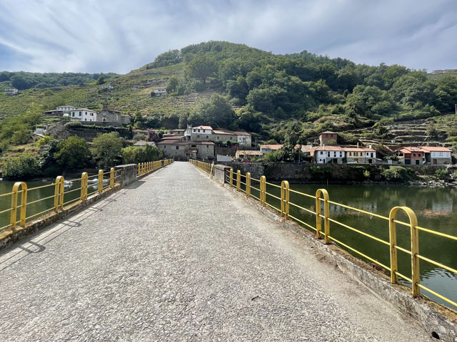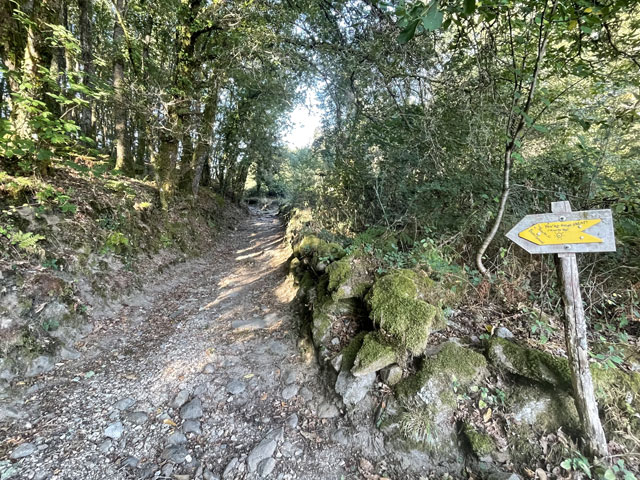 Dann ging es lange geradeaus, wobei die Bebauung immer spärlicher wurde. Auf einer nur wenig befahrenen Straße ging es über den Río Cinsa und zweimal über die Nationalstraße. Dann war ringsum nur noch Natur und die Straße führte langsam, aber stetig bergauf. Da hat mich Margarita, eine nicht mehr ganz junge Portugiesin überholt und sich entschuldigt, dass sie so schnell läuft. Sie hat es nicht so mit den Bergen und da muss sie auf den flachen Strecken noch was rausholen. Da geht es ihr wie mir, nur dass ich auch im Flachen nicht so sonderlich schnell bin. Da Margarita auch Marco überholt hat, der weit vor mir war, muss sie auch in den Bergen einen ordentlichen Schritt zugelegt haben.