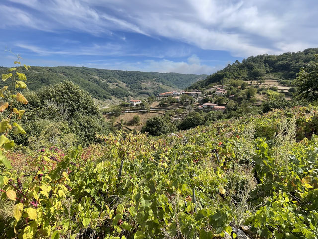 Als die Sprache auf Wein kam, weil ich ihn fragte, ob er auch einen Weinberg hat, kam er ins Schwärmen. Das ist ja hier eine ganz besondere Weingegend, die „Ribeira Sacra“ (Heiliges Uferland), und natürlich hat er auch einen kleinen Weinberg, den er zusammen mit einem Bekannten bewirtschaftet, der Ahnung davon hat. Er habe einen sehr guten Wein und den müsste ich unbedingt kosten. Zwei Minuten später hatte ich statt einer ausgetrunkenen Wasserflasche eine Weinflasche mit edlem Etikett und Seriennummer in der Seitentasche meines Rucksacks.