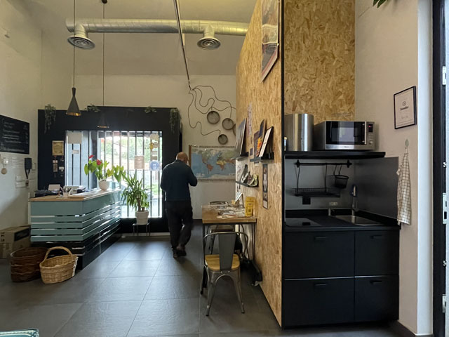Im Ort angekommen, war ich zunächst schockiert, denn an der Stelle, wo das erwählte Hostel in der Karte eingezeichnet war, stand nur ein halb verfallenes Haus, umgeben von einer aufgegebenen Baustelle. Aber das war zum Glück nur ein Fehler in der Karte. Ein paar Meter weiter fand sich in einer Seitenstraße das gesuchte Hostel, zur Straße hin mit einer rostfarbenen, fensterlosen Metallfassade, was schon erahnen ließ, dass es innen schick und modern aussieht.
