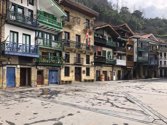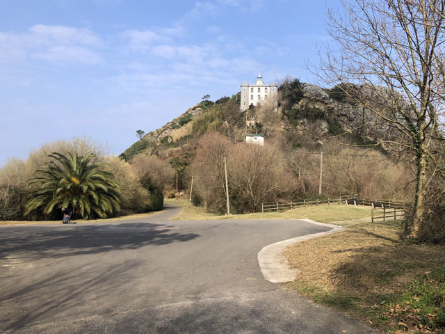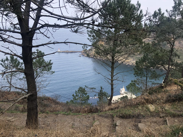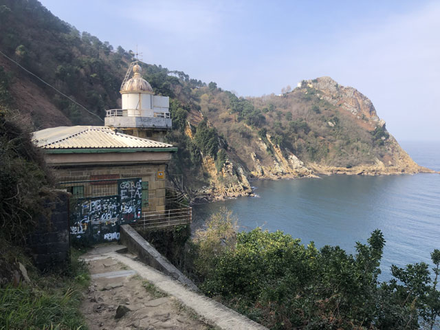Als ich gestern Abend kurz nach acht wieder in der Herberge ankam, war im Schlafsaal schon Totenstille. Es war bei vier Mitbewohnern geblieben, die alle schon in den Betten lagen. Nur der junge Mann, ein Franzose, hat noch mit der Taschenlampe gelesen. Der hat schon mit dem Buch im Bett gelegen, als ich nachmittags meinen Rucksack abgestellt habe. Das muss ein spannendes Buch sein. Beim Frühstück hat er erzählt, dass er in Bordeaux gestartet ist, zwischendurch aber ein paar Tage „gechillt“ und das Versäumte mit dem Bus übersprungen hat. Na, das kennt man von Hape Kerkeling. Statt auch gleich ins Bett zu steigen habe ich mich noch mit den Resten meiner Marschverpflegung in den Aufenthaltsraum gesetzt und dort mit der Hospitalera gequatscht, die dabei war, den Frühstückstisch zu decken. Sie betreut erst seit ein paar Tagen diese Herberge. Sie gehört nicht zu einem Pilgerverein, ist aber mit anderen Freiwilligen vernetzt. Man informiert sich gegenseitig, wenn irgendwo jemand gebraucht wird. Da sie in Lissabon wohnt, hätte sie eigentlich gern eine Herberge am Camino Portugues übernommen, aber in Irun gab es gerade einen personellen Engpass. Als ich um neun auf den Weg zum Schlafsaal war, kam noch ein sechster Pilger hereingeschneit: Florian aus Köln, der mit dem Zug über Paris gekommen ist, aber ab Dax die Bimmelbahn nehmen musste, da er im durchgehenden Zug keinen Platz mehr bekommen hat. Und bei der Bimmelbahn ging es wohl nicht ganz pünktlich zu. Er will heute mit dem Zug weiter nach Santander. Er ist vor drei Jahren in Irun losgelaufen und damals wegen Corona nur bis Santander gekommen. Ich habe nicht sonderlich gut geschlafen, da das Bett recht weich war und ich trotz Decke überm Schlafsack gefroren habe. Ich war aber auch zu faul, mir warme Sachen aus dem Rucksack zu holen. Vermutlich war ich am Anreisetag nicht k.o. genug, um im Tiefschlaf zu versinken. Um Dreiviertel sieben ging dann das Licht und auf dem Flur Musik an, was der Ruf zum Frühstück war. Zum Frühstück gab es wunderbaren Kaffee und Toastbrot. Dazu leider nur Margarine und Marmelade, wie in Spanien üblich. Es war auch nichts anderes im Haus, sonst hätte mir Elena sicher auf meine Frage hin was rausgerückt. Im festen Vertrauen auf meine Diabetes-Tabletten habe ich mir zwei Marmeladen-Stullen geschmiert und noch ein Milchbrötchen für den Weg mitgenommen. Nach wenigen hundert Meter entlang der Straße nach Hondarribia und dann einen Flussarm entlang ging es auf einen steilen, sich in vielen Windungen nach oben schlängelnden, furchtbar steinigen Weg, der zeitweise auch als Bachbett dient, bis zu einem Kloster in etwa 200 Meter Höhe. Da war leider einschließlich der Kirche alles verrammelt. Das Kloster auf dem Berg hatte ich schon am Vortag entdeckt und meine Befürchtung, dass ich da hoch muss, hat sich bewahrheitet. Hier konnte man wählen zwischen einem Weg, der sich in etwa gleichbleibender Höhe auf der Südseite der Bergkette entlang zieht, und dem Weg auf dem Grat, der zwischenzeitlich auf über 500 Meter ansteigt. Von letzterem hat man theoretisch einen guten Blick aufs Meer, aber bei diesem trüben Wetter halt nur theoretisch. Da fiel mir die Wahl leicht. Der Weg am Südhang war ganz gut zu laufen und durch die Bäume hat man zunächst auf die Städte am Grenzfluss (Hendaye, Hondarribia und Irun) geschaut und später auf Pasaia mit einem großen Gewerbegebiet und mehreren riesigen Stellflächen für Autos. Beim steilen Abstieg auf Treppen runter zum Fluss, der bei Pasaia in die Biskaya mündet, kamen noch große Hafenanlagen in Sicht. Unten angekommen ging es vorbei an schönen alten Häusern, die sich an den Berghang lehnen, bzw. durch diese hindurch zur Fähre, die permanent verkehrt und einem für 1,10 € einen weiten Umweg um das Hafenbecken erspart. Auf der anderen Seite des Flusses wurde dann schnell klar, dass der Jakobsweg nicht nur jedes auf einem Berg gelegenes Kloster mitnimmt, sondern auch jeden hoch auf einer Klippe thronenden Leuchtturm. Nach unendlich vielen Stufen, die zwischen der Felswand und einem Mäuerchen nach oben führen, konnte man dann alle Leuchttürme an der Hafeneinfahrt von oben betrachten bzw. ihnen in die Augen schauen. Bei einer Rast auf diesem wirklich anstrengenden Weg habe ich Marina aus der Nähe von Wiesbaden wiedergetroffen, deren Bekanntschaft ich morgens beim Zähneputzen gemacht habe. Sie hatte vor dem Frühstück schon alles gepackt und ist nach dem letzten Bissen gleich los. Erst an besagtem Kloster habe ich sie ein- und überholt. Als ich mich auf dem vermeintlichen Gipfel auf einer Bank ausgeruht habe, kam sie ziemlich außer Atem den Weg hochgestiegen und hat neben mir Platz genommen. Beim üblichen „woher, wohin und warum“ hat sie erzählt, dass sie einen Hirntumor überstanden hat, einen Herzschrittmacher trägt, immer mal umfällt und wegen der vielen Ausfälle ihren Job verloren hat. Nun hat sie sich vorgenommen, diesen Weg zu gehen. Ihr Mann wollte sie begleiten, aber sie wollte das unbedingt allein durchziehen. Ich habe gemerkt, dass sie trotz allem freundlichen Austausch gern allein sein will. Ich hab sie auch allein ziehen lassen, aber nun immer versucht, sie halbwegs im Auge zu behalten, falls ihr was zustößt. In San Sebastian angekommen, ist Marina zielgerichtet in Richtung Strand abgebogen, ich bin weiter geradeaus, um nicht den Anschein zu erwecken, dass ich ihr nachsteige. Ich habe dann erstmal Booking.com aufgerufen, um zu sehen, was es an Hostels gibt. Die Auswahl war erfreulicherweise groß und vielfältig, darunter auch einige preiswerte. Ich habe gleich das nächstgelegene genommen, das Surfer-Hostel „Surfing Etxea“ in der zweiten Straße vom Strand aus gesehen. Das besteht aus einer kleinen Bar und darüber drei Schlafräumen und sehr ordentlichen Sanitäranlagen. In meinem Acht-Mann-Zimmer war nur ein Bett belegt: von einem echten Surfer aus der Schweiz. Ich wusste gar nicht, dass Surfen dort Volkssport ist. Ich 