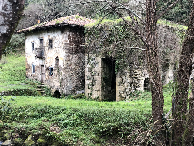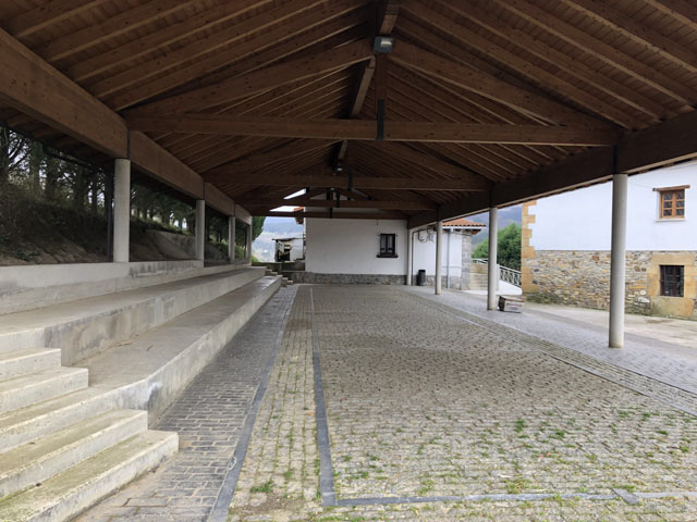 Wie unschwer am Sendedatum meines letzten Berichts zu erkennen ist, wurde es gestern noch spät, obwohl alle von den mehr als 30 km über die Berge ziemlich ausgelaugt waren. Antoine, der vermutlich aus Kostengründen die vorangegangene Nacht kurz vor Deba unter dem Vordach einer Kapelle zugebracht hat, begrüßte mich gleich mit „Ich habe Dir ein Bier mitgebracht“. Und auch für Manuel hatte er ein „San Miguel“ übrig. Quentin (Hat das schon mal jemand ausgesprochen gehört? Ich musste es mir aufschreiben lassen.) holte dann noch eine große Flasche Schnaps und eine kleine Cola aus dem Rucksack. Damit haben sich die Jungs was fifty-fifty gemischt und es blieb trotzdem noch ein ordentlicher Schluck übrig, welchen sie den Klosterbrüdern respektive nachfolgenden Pilgern ins Gefrierfach legten. Da lag auch schon eine vergessene Kompresse. Wenn sich jemand den Kanten allein reindreht, kann er morgens die Kompresse auf die schmerzende Stirn legen. Das Gespräch, dass sich nach dem Abendbrot entwickelte, war ganz witzig: Manuel, bei der Stadtverwaltung von Alicante für die Kultur zuständig, spricht nur Spanisch. Antoine kann neben Französisch etwas Spanisch, Quentin spricht neben Französisch sehr gut Englisch und ich spreche bekanntlich neben mangelhaftem Deutsch nur bruchstückhaft Englisch. Wenn Manuel mir was mitzuteilen hatte, dann ging das auf Spanisch an Antoine, von dem auf Französisch an Quentin und von diesem auf Englisch an nicht. Die Antwort dann verständlicherweise in umgekehrter Richtung. Das war wie „Stille Post“, nur halt etwas lauter. Ich hab‘ ganz gut geschlafen, was aber sicher an der körperlichen Anstrengung und nicht an den Betten lag. Antoine ist kurz nach sieben los, wir drei Verbliebenen haben noch ordentlich gefrühstückt. Das Baguette, das uns der Mönch an Abend gebracht hatte, war noch gut brauchbar und im Schrank fand sich außerdem leckerer spanischer Zwieback. Im Kühlschrank stand Marmelade und Margarine, wegen der der Mönch gestern extra nochmal zurück gelaufen ist. Im Regal war löslicher Kaffee und im Kühlschrank Milch. Zusammen mit dem gekochten Schinken aus meinem Bestand ergab das ein köstliches Frühstück. Danach haben wir abgewaschen, aufgeräumt und eine ordentliche Spende in den Briefkasten an der Wand getan. 14.00 Uhr. Nach knapp 6 Stunden und 18 km durch die Berge endlich die erste Einkehrmöglichkeit. Man fühlt sich (wenn man die Berge wegrechnet) wie in Brandenburg. Es ging öfter mal an einem reißenden Bach entlang und immer wieder traf ich auf ehemalige Mühlen. Vom Kloster ging es zunächst ziemlich übel bergauf. Die felsigen Wege sind morgens auch dann nass, wenn es nicht geregnet hat. Da fliegt man auch oder gerade dann hin, wenn man schwere Schuhe mit Traktorsohle hat. Bei mir hat’s immerhin 200 Meter gedauert. Aber das macht nichts, denn ich habe schon vorm Losgehen mit Manuel verabredet, dass wir uns am Abend in der Herberge eine Waschmaschine teilen. Wo er sich gerade rumtreibt, weiß ich nicht. Er müsste noch hinter mir sein, denn er wollte sich heute früh noch die Kirche anschauen, die ich gestern Abend schon besichtigt habe. Es ist ein ziemlich einfacher, nicht großer, aber recht hoher Bau aus Naturstein. Mir ist aufgefallen, dass hier nicht einmal der Chor verputzt ist, sondern der helle, nur grob behauene Sandstein bis zum Gewölbe reicht. Davor steht ein hoher, sehr bunter und teilweise auch vergoldeter Altar mit mehreren Bildern und einigen Figuren. Darunter auch St. Rochus nebst Engel. Einen Jakobus habe ich nicht gesehen. Bei der Komplet gestern Abend haben die Mönche erst bei beleuchteter Kirche auf dem Chorgestühl mit Blick zu dem von mir vertretenen Volk gesessen. Dann haben sie sich stehend mit dem Rücken zu mir als Volk vor dem Altar aufgestellt. Das Licht ging aus und nur ein Spot beleuchtete das Altarbild. Dazu der ins Ohr und Herz gehende Gesang. Das war sehr stimmungsvoll. Sehr eindrucksvoll waren heute die ordentlichen, sogar mit Geländer versehenen Holztreppen mit insgesamt über 300 Stufen, auf denen es nach den ersten Berg hinunter nach Munitibar ging. Die folgenden Wege waren nicht so komfortabel und sehr matschig. Da, wo immer Wasser den Weg kreuzt, hat man aber freundlicherweise große Steine über den Wasserlauf gelegt oder sogar Brückchen gebaut. Beeindruckend war Mendieta mit seiner einfachen, aber markanten Kirche, die nur einen kleinen quadratischen Turm besitzt aber auf zwei Seiten von einer großen Vorhalle umgeben ist. Der Weg führte so um das Dorf herum, dass man die Kirche von oben und von unten sowie aus allen vier Himmelsrichtungen bestaunen konnte. Jetzt bin ich in einem Vorort von Gernika angekommen, jener Stadt, die 1937 im spanischen Bürgerkrieg von der deutschen Legion Condor grundlos zerbombt wurde. Vermutlich ist hier der spätere Luftkrieg geübt worden. Bei einem Brand infolge der Bombenabwürfe sind viele hundert Zivilisten umgekommen. Picasso hat diese Schrecken des Krieges in seinem Bild „Guernica“ darzustellen versucht. Auch wenn es mich reizt, bis zum Ladenschluss in der Taverne zu bleiben, werde ich gleich aufbrechen und mich noch etwas in der Stadt umsehen, bevor ich mich zu der etwa 5,5 km entfernten Herberge in Pozueta aufmachen, wo ich mich mit Martin und Quentin verabredet habe. Eine Besichtigungstour durch Gernika zu machen, hat nicht gelohnt. Es ist fast alles Neubau und in dem alten, wiederaufgebauten Viertel rings um das Touristenbüro gab es nicht viel zu sehen und war es am frühen Nachmittag auch ziemlich tot. Sämtliche Kultur geht erst um 17 Uhr wieder los. Das Museum war also zu und auch die Kirche geschlossen. Da bin ich gleich weiter. Ihr könnt raten, ob es dabei hoch oder runter ging. Eine kleine Hilfestellung: Gernika liegt 23 Meter über dem Meeresspiegel. Jetzt sitze ich frisch geduscht und elegant gekleidet (frische Hose) vor der Herberge in dem kleinen Weiler Pozueta, wo ich Quartier genommen und auch Abendessen bestel