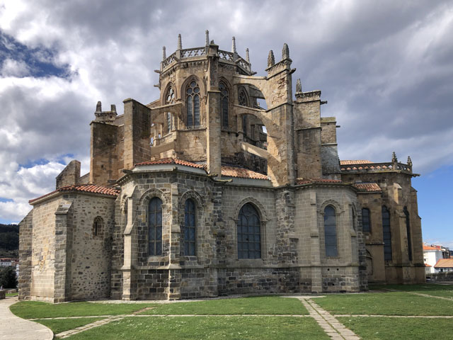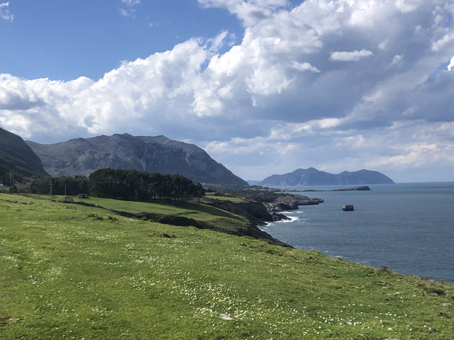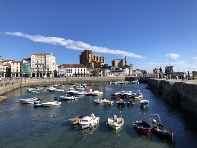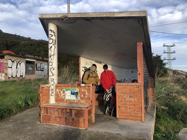 Die Nacht in der Bushaltestelle war nicht so schlimm wie gedacht, da nachts noch etwa 10 Grad waren. Eine Isomatte wäre allerdings sehr angebracht gewesen, denn die steinerne Bank war doch ziemlich hart und kalt. Ich habe mir alle möglichen weichen Sachen untergelegt. Dann war es auszuhalten, aber nach jeder Drehung musste alles neu arrangiert werden. Dummerweise kam nachts um 11 Uhr heftiger Sturm auf und laufend flog mir was weg. Ich glaube, ein Handtuch habe ich dauerhaft eingebüßt. Beim nächsten Mal muss ich alle „Weichmacher“ mit in den Schlafsack nehmen. Mitten in der Nacht gesellte sich noch Quentin zu uns. Der hatte sich nebenan in einer ausgedienten Imbissbude niedergelegt und ist dort geflüchtet, weil der morsche Boden nachgab. Für ihn gab es nun zwar keine Bank mehr in der Bushaltestelle, aber mit einer Isomatte auf dem Boden ging es auch. Um sechs war ich hellwach und habe überlegt, ob ich trotz der Dunkelheit schon aufbreche. Aber nun wollte ich die beiden auch nicht ohne Verabschiedung zurück lassen. Ich habe mich nochmal umgedreht und bin offenbar wieder eingeschlafen, denn als ich mich wieder umschaute, war es halb acht und schon hell. Ich bin rüber zur Tankstelle aufs Klo und hab von dort drei Cola-Büchsen mitgebracht. Damit konnten wir unser Frühstück aus dem Rucksack gut komplettieren. Halb neun sind wir los und zwar gleich auf der Küstenstraße weiter nach Castro Urdiales und nicht den Berg runter zurück ins Dorf und dann im Zickzack über den Berg. Das hat etwas Zeit und ein paar Höhenmeter gespart. Und da auch hier vereinzelt gelbe Pfeile klebten, kann das nicht verwerflich sein. In der ersten Bar an der Straße haben wir auf der Terrasse einen Kaffee getrunken und während die Beiden dort noch in der Sonne sitzen blieben, bin ich schon mal weiter. Die holen mich bestimmt bald ein. Aber noch warte ich vergeblich in einer Kneipe am Wegesrand, wo ich Smartphone und Powerbank aufladen kann. Und da man ja sowas nicht macht, ohne Umsatz zu bescheren, habe ich mir ein Fläschlein leckeres „Alhambra Reserva 1925“ kommen lassen. Schade, irgendwann wird das Smartphone voll sein … 15.30 Uhr. Heute wird es wohl wieder ein langer Tag werden. Ich will nach Hazas (Liendo), wo die Herberge sicher geöffnet ist, wenn der angeblich im Haus wohnende Wirt nicht verstorben oder im Krankenhaus ist. Bis dahin sind es noch 11 km, also 2,5 Std. Ich muss aber mal eine Pause einlegen, schon um das Smartphone wieder zu laden und weil hier anscheinend gleich ein Gewitter runter geht. Das warte ich lieber in dem recht ordentlichen „Restaurante La Abiela Santa“ ab. Hier riecht es auch gut nach Essen, aber wenn ich mir hier den Bauch vollschlage, komme ich gar nicht voran. Außerdem habe ich noch Proviant im Rucksack, der mir dann vergammelt. An Wegen war heute von allem was dabei. Die ersten Kilometer gingen, wie selbst gewählt, immer an einer Fernstraße ohne Randstreifen entlang, dann gab es kaum befahrene Ortsverbindungsstraßen, oft parallel zur Autobahn, und zuletzt einen Holperweg über ausgewaschenen Kalkstein und über eine große Wiese oben auf den Klippen. Das hätte auch Irland oder Schottland sein können. Gestern war der Weg noch komfortabler: bis Portugalete auf der Uferpromenade, dann über einige Kilometer auf einer Asphaltpiste mit zwei Rad- und einer Fußgängerspur. Danach mal für ein kurzes Stück das Übliche und zum Schluss eine kaum befahrene Straße in gutem Zustand. Die Höhenunterschiede halten sich jetzt auch in erträglichen Grenzen. Seit gestern bin ich übrigens in Kantabrien, das Baskenland liegt also hinter mir. Den Wechsel hat man nur daran gespürt, dass plötzlich keine Straßenschilder mehr zweisprachig sind und dass die hölzernen Stelen „Camino de Santiago“ fehlen. Dafür gibt es hier, wenn auch nur sehr sporadisch, kleine, oben abgeschrägte Betonstelen mit der Jakobsmuschel und einem Pfeil. Denen werde ich jetzt mal trotz Regen weiter folgen, damit ich noch im Hellen ankomme. Das letzte Stück des Weges hat sich ganz schön hingezogen und ich bin klatschnass geworden. Als ich aus der Gaststätte raus kam, hat es nur genieselt, aber der Regen wurde schlimmer und bald goss es. Da war es denn eh zu spät den Poncho rauszuholen. Bis auf die Knochen nass bin ich um viertel acht in Hazas angekommen und habe auch gleich die Herberge gefunden - aber nur weil ich Leute danach gefragt und ein Bild des Hauses gesehen hatte, denn in der Karte ist sie nicht verzeichnet. Erstaunt war ich, dass drinnen gerade Antoine und Quentin mit der Dame am Tisch saßen, welche die Personalien aufnimmt (einen Hospitalero, der die ganze Zeit da ist, gibt es hier nicht, auch keinen hier wohnenden Herbergsbesitzer, da es eine kommunale Herberge ist). Ich dachte, die wären schon viel früher hier angekommen. Wir sind vermutlich in Castro Urdialis, einer sehr hübschen Hafenstadt mit Burg und Kirche auf einer Halbinsel, aneinander vorbei gelaufen. Wir haben für die sehr ordentliche kommunale Herberge mit voll ausgestatteter Küche jeder 8 € bezahlt, inklusive Waschmaschinennutzung, was sonst meist schon 3 € kostet. Das kam mir sehr gelegen, da ich schon den Wäschesack voll durchgeschwitzter Sachen hatte. Leider gibt es keinen Trockner, so dass man nur hoffen kann, dass morgen alles wenigstens so trocken ist, dass es verpackt werden kann. Außer uns ist übrigens niemand hier. |