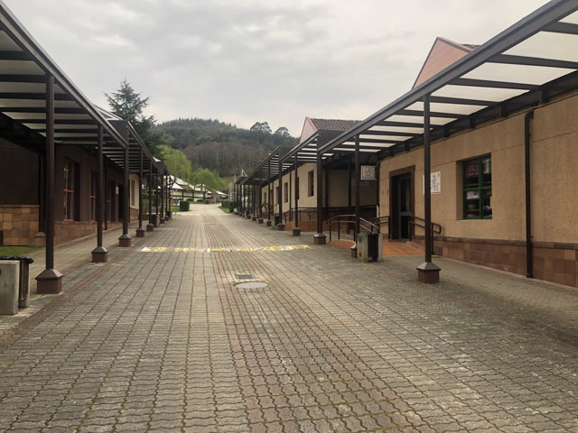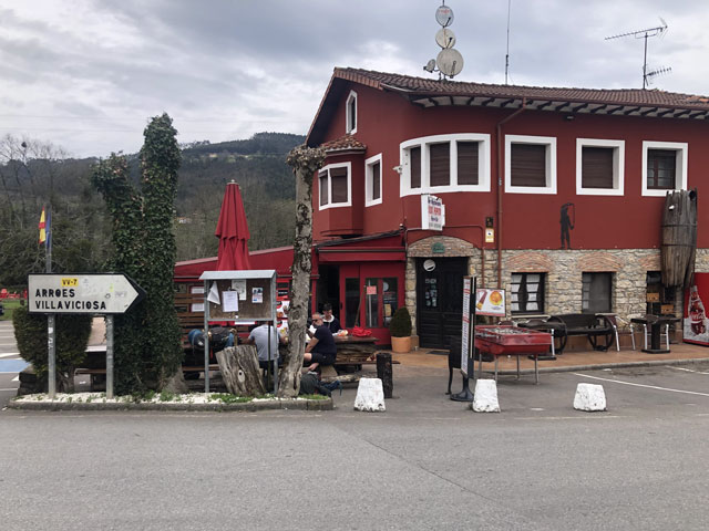 Die beiden Mitschläfer in meinem Zimmer, Annie und David, erwiesen sich heute früh als Langschläfer. Ich habe bis sieben gewartet und dann meine Sachen gepackt und mich auf den Weg gemacht. Erst mal bis zur nächsten Bar, um dort einen Kaffee zu fassen. Um acht ging es dann richtig los. Ein Stück bin ich mit Alex gelaufen, der vom Flugplatz Memmingen schwärmt, zu dem er es näher hat, als nach München und wo er problemlos sein Auto abstellen kann. Ryanair fliegt von Memmingen die verrücktesten Ziele an. Er ist von dort nach Sevilla geflogen, um seine Fallschirmspringer-Lizenz zu machen und er wird von Santiago wieder nonstop nach Memmingen fliegen. Er weiß nur noch nicht wann … Der Weg führte heute wieder durchs Hinterland, das nicht viel anders aussieht wie bergige Regionen bei uns in Deutschland. Nur dass es hier kaum richtige Dörfer gibt, sondern alles verstreut liegt. Kurz hinter Villaviciosa trennen sich wie gesagt die beiden Jakobsweg-Varianten. Vermutlich nimmt die Mehrzahl der Pilger die Variante über Gijon an der Küste, zumal die kürzer ist, als die über Oviedo (2 statt 3 Etappen bis Avilés). Annie wird hingegen nach Oviedo abgebogen sein, denn sie erzählte gestern noch, dass sie auf den Camino Primitivo wechseln will, weil ihr auf dem Camino del Norte zu wenige Berge sind. So verschieden sind die Geschmäcker. Ich habe vorhin in mich hinein geschimpft, als es wieder auf 450 Meter hoch ging. Überwiegend auf steilen Waldwegen und erst zum Schluss auf einer Straße mit mäßiger Steigung. Kurz vor dem steilen Anstieg habe ich auf einer Pilgerbank nochmal Pause gemacht, um mich zu stärken. Kaum saß ich, kamen zwei niedliche kleine Hunde vom Nachbargehöft und hüpften um mich herum und an mir hoch. Hätte ich jetzt wie geplant die als eiserne Reserve mitgeführten Cabanossi ausgepackt, wäre ich genauso hungrig aufgestanden, wie ich mich hingesetzt habe. Als die beiden Hunde merkten, dass nichts zu holen ist, haben sie sich auf die Straße zurückgezogen und mich von dort beobachtet. Ich brauchte nur die Hand in Richtung Rucksack bewegen und schon ging die Prozedur von vorn los. Ich habe gemeinerweise nichts von meiner Wurst abgegeben, aber selbst auch nichts gegessen. Einige Kilometer weiter bin ich übrigens wieder an einen (ganz braven) Hund geraten, der vor einem Grundstück stand und gestreichelt werden wollte. Als der an meiner Hose gerochen hat, dass da schon zwei Kollegen am Werk waren, hat er gar nicht mehr von mir abgelassen. Zum Glück hat jeder Aufstieg mal ein Ende. Bergab ging es auf einer asphaltierten Straße. Dabei konnte man wieder die ganze Gegend überblicken und irgendwann kam auch die ersehnte Kneipe „Casa Pepito“ in Peon ins Blickfeld. Schon von weitem waren Paul, Alejandro und der verloren geglaubte Antoine (die mich gerade alle überholt haben) an einem großen Tisch vor der Kneipe zu erkennen. Beim Näherkommen musste ich dann wahrnehmen, das die gar keine Getränke vor sich haben. Hier war der Katastrophenfall eingetreten, dass die nach Überquerung einer Bergkette sehnlichst erhoffte Kneipe zu hatte. Das muss auch außerplanmäßig gewesen sein, denn während wir da saßen, kamen einige Autos mit Bauarbeitern, die dort Mittagspause machen wollten. Wie schon aus dem Routenplaner ersichtlich, war jetzt noch ein kleinerer Berg zu überwinden. Es ging also wieder teils auf der Straße, teils auf steinigen Wegen bergauf. Oben angekommen ergab sich doppelter Grund zur Freude. Erstens konnte man von dort auf Gijon und das Meer schauen und zweitens saß dort auf einer Bank am Straßenrand Paul mit einer Bierflasche in der Hand. Es war zwar nur „Mahou“, aber in dieser Ausnahmesituation hätte ich auch ein Sternburg akzeptiert. Ein DIN-A4-großes Schild am Eingang des Hauses hinter der Bank wies darauf hin, dass es sich hier um eine Bar handelt. Drinnen im dunklen Schankraum, der von ein paar Einheimischen bevölkert war, stand eine alte Dame am Tresen, die diesen Job bestimmt schon seit 80 Jahren ausübt. Für die von mir bestellten zwei Bier ist sie dann extra in ein Hinterzimmer verschwunden, um die Flaschen dort aus dem Kühlschrank zu holen. Aber das war wahrlich eine lebensrettende Maßnahme für mich und Antoine, der gerade zu uns gestoßen war. Paul wollte wie Alex, Alejandro und Björn nach Gijon und dort in einem Hostel oder Hotel unterkommen. Ich habe mich da nicht ran gehängt, denn ich wollte langsam mal wieder in den Pilgermodus kommen, das heißt, ein bisschen mehr allein sein, neue Leute treffen und die Herbergsatmosphäre genießen. Also habe ich beschlossen, in Deva, (etwa 8 km vor Gijon) die Herberge auf dem zu dieser Zeit fast leeren Campingplatz zu nutzen. Die steht mit 7 € in meiner Liste. Inzwischen sind es zwar 9 €, aber das ist ok. Nun habe ich zwar die genannten 8 km von meinem gestern erreichten 3-Tage-Vorsprung eingebüßt, aber ich hoffe, dass ich das morgen wieder aufholen kann und bis Avilés komme. 18.00 Uhr. Ich sitze jetzt in der Gaststätte des Zeltplatzes, die erwartungsgemäß sehr leer ist. Ich habe mir erlaubt, den Wirt in der aus seiner Sicht wohlverdienten Pause zu stören. Mich hat hier das Tagesmenü für 11 € interessiert. Für den ersten Gang konnte er mir noch eine Auswahl bieten: Lasagne oder Linsen. Beim Hauptgericht gab es keine Wahl, da waren Calamaris vorgeschrieben. Bei aller Liebe zu Meeresfrüchten, das ist doch eher was für die Katze, die hier durch den Gastraum schleicht und sich nicht vertreiben lässt. Vielleicht sollte man das Schild „keine Hunde“ an der Tür entfernen. Ein Bullterrier hätte den Gastraum vermutlich katzenfrei gemacht. Den würde ich aber auch nicht gern beim Essen neben mir haben wollen. Bei jeder Bewegung, die der Wirt macht, droht die Gefahr, dass er umfällt und einschläft. Immerhin hat er es geschafft, den 9-Euro-Teller bis zu meinem Tisch zu bringen: 3 Scheiben Schweine-Lende im Wurstscheibenformat, wie man sie vermutlich als Aufschnitt kaufen