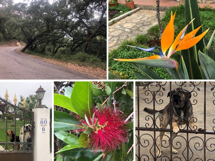 Er hat mich letztlich 16 km, also vier Stunden lang bis Monsanto begleitet. Als der Ort mit meiner Herberge erreicht war, habe ich gegrübelt, wie ich mich von ihm trennen kann, denn ich wollte und konnte ihn nicht mit in die Herberge nehmen und das hätte er sicher auch gar nicht gewollt. Aber ihn einfach so draußen rumirren lassen, wollte ich auch nicht, obwohl er das sicher gepackt hätte. An einer Kreuzung im Ort ist er mal wieder zwischen drei Autos gelaufen, die zum Glück alle gebremst haben. Ein Auto hielt an und eine Frau zog den Hund rein. Ich hatte da nur die Varianten im Sinn, dass es sich um die Besitzerin handelte, die es bei einem frei rumlaufenden Hund vermutlich gar nicht gibt, oder um eine Hundefängerin. Aber wie sich später zeigte, saßen in dem Auto zwei Tierliebhaberinnen, die den Hund einfach von der Straße holen wollten. Als ich nämlich an der Bar ankam, in der ich mir den Schlüssel für die Herberge holen sollte, waren genau dort vor der Tür die beiden Frauen bemüht, den Hund festzuhalten. Ich habe denen noch gesagt, seit wann mich der Hund begleitet hat und bin dann schnell rein. Nun wusste ich ja, dass der Hund in vermutlich guten Händen ist. Ich hoffe nur, dass der nicht irgendwo eingesperrt wird, sondern weiter draußen rumtoben kann.