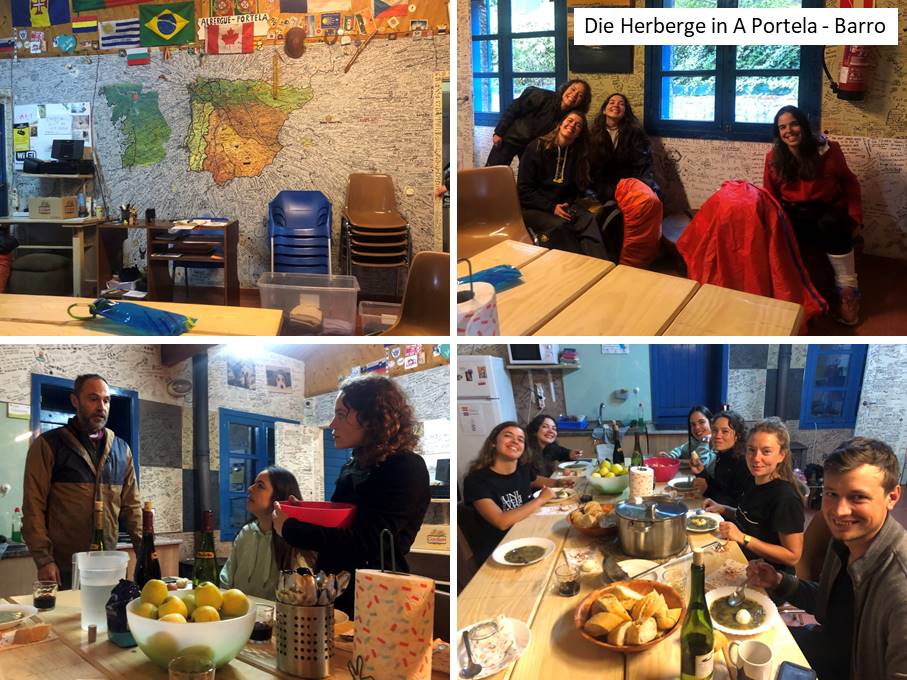 18.00 Uhr. Ich sitze in der Herberge von A Portela, auf der Hälfte der Strecke von Pontevedra nach Caldas de Reis. Eigentlich wollte ich noch ein Stück weiter, aber ich hatte die Nase voll vom ewigen Poncho-An- und -Ausziehen und außerdem waren das laut Komoot schon fast 30 km. Die Herberge liegt etwas abseits vom Weg und hat 16 Betten. Im Ort davor habe ich in der Gaststätte die vier Mädels getroffen, die vor zwei Tagen in der Herberge von O Porriño waren und heute schon mal an mir vorbei gezogen sind. Die haben also nicht den Bus genommen, was mein Verdacht war. Die wollten eigentlich auch weiter, haben aber beschlossen, hier zu bleiben. Es sind übrigens vier Portugiesinnen, die in Porto gestartet sind. Ich wollte in besagter Gaststätte noch was essen, aber die Küche war schon zu und macht erst halb acht wieder auf.