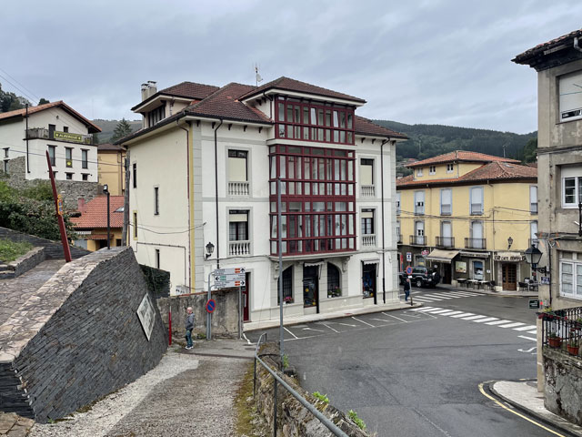 Kaum hatte ich heute Morgen den im Dunkeln getippten Bericht und die Fotos weggeschickt, ging plötzlich das Licht an. Ob die Stromsperre gewollt oder ungewollt war, habe ich nicht herausbekommen. Wie befürchtet erwiesen sich die Sanitäranlagen als etwas knapp bemessen. Aber da es heutzutage nicht vom äußeren Erscheinungsbild, sondern vom eigenen Gefühl abhängt, ob man Männlein oder Weiblein ist, habe ich mich heute mal so gefühlt, als ob die Damentoilette für mich die richtige wäre. Für diese gab es erfreulicherweise gerade keine Anwärterinnen, während vor der Herrentoilette Gedränge war. Mit mir ist nämlich eine fünfköpfige Gruppe junger Männer im Abiturientenalter aufgestanden und zeitgleich in Richtung Klo geeilt - bis auf einen, der schon dabei war, alle mit Blasen verzierten Zehen mit Pflastern zu umwickeln. Für die Damentoilette sprach auch, dass im Männerklo offenbar nachts einige versucht haben, in absoluter Finsternis stehend die Porzellanschüssel zu treffen. Als ich um halb acht losgezogen bin, war es noch ziemlich dunkel, weil alles in Nebel oder Wolken gehüllt war und es zudem bereits regnete. Erst als ich schon ein ganzes Stück den Berg hochgelaufen war, bildeten sich ein paar Wolkenlücken und gaben den Blick frei auf einzelne Teile der Stadt. Das war ein ganz imposantes Schauspiel. Bei einem der Ausblicke bin ich auf „Mexi“ (Margret, die mal ein Junge namens „Max“ werden sollte) gestoßen - eine pensionierte schweizerische Informatikerin, die seit ein paar Jahren verwitwet ist und nun allein diverse Jakobswege absolviert. Mit der bin ich eine ganze Weile schwatzend gelaufen. Vom Schweizerdeutsch habe ich zwar auch nicht alles verstanden, aber mehr als bei den Amerikanern, von denen hier einige unterwegs sind. Die Ärmste ist unfreiwillig mit einem kleinen Beutelchen auf dem Rücken unterwegs. Sie ist vorgestern auf dem Weg von einer Hornisse gestochen worden und mit tiefroter und dick angeschwollener Schulter- und Brustpartie in Salas zum Arzt gegangen, der ihr Cortison in allen Darreichungsformen verordnet und das Rucksacktragen für mindestens fünf Tage verboten hat. Nun muss sie immer ihr Gepäck zur nächsten Herberge transportieren lassen (was hier wie auf den anderen Wegen für je 5 € möglich ist) und die Unterkünfte vorbuchen, da man ja einen Zielort des Gepäcks angeben muss. Darüber ist sie gar nicht glücklich, da sie genau wie ich lieber läuft, bis sich Müdigkeit einstellt, statt sich vorher festzulegen. Bei einem der Aufstiege musste ich sie laufen lassen, weil mir sehr nach einer Pause war, während sie noch munter vorwärts stapfte. Na, vielleicht sehen wir uns nochmal. Die hübsche junge Südafrikanerin habe ich gestern Abend nahe der Rochus-Kapelle auch wiedergetroffen und endlich mal nach ihrem Namen gefragt: Zoe. Ich dachte, sie wohnt vielleicht in Europa, aber nein, sie ist extra wegen dem Jakobsweg nach Europa gekommen. Damit es sich lohnt, hat sie im französischen Le Puy begonnen, ist von Saint-Jean-Pied-de-Port entlang der Pyrenäen nach Irun gelaufen und hat dann den Camino del Norte bis Oviedo genommen. Bis hier waren das 79 Tage und 1.500 km. Als ich ihr sagte, dass sie sich beeilen soll, weil die Herberge schon ziemlich voll ist, meinte sie, dass dies kein Problem sei, weil sie ja ein Zelt dabei hat. Und tatsächlich schleppt sie scheinbar mühelos einen riesigen Rucksack durch die Gegend. Alle Achtung! Heute stand nach etwa 15 km die Entscheidung an, ob man den Weg über Hospitales oder über Pola de Allande nimmt. Ersterer geht ab da bergauf und verläuft dann auf etwa gleicher Höhe, vorbei an den Ruinen alter Herbergen (Hospitales). Der andere bleibt auf ursprünglicher Höhe und geht sogar bergab, um dann steil nach oben zu dem Punkt zu führen, wo sich beide Wege in der Nähe eines Passes treffen. Von den Höhenmetern nehmen sich also beide Wege nicht viel. Letzterer ist zwar ein Stück länger, bietet aber zwischendurch Unterbringungsmöglichkeiten, während der andere auf 20 km keine Herbergen hat. Wenn man den Weg über Hospitales gehen will, sollte man schon in Borres, kurz vor der Gabelung des Weges, Quartier nehmen. Da beim aktuellen Wetter ohne Fernsicht nichts für den Höhenweg sprach, blieb eigentlich nur der Weg über Pola de Allande. Der Ort bot sich auch gleich als Etappenziel an, da er knapp 30 km von Tineo entfernt ist und mehrere Herbergen hat. Anders als „vorgeschrieben“ bin ich die letzten Kilometer wieder auf der Straße gelaufen, weil die Wege durch den Regen ziemlich aufgeweicht bzw. rutschig waren und es zuletzt doch recht steil bergab ging. Ich habe zwar nichts gegen schlüpfrige Witze, aber schlüpfrige Wege sind nicht mein Ding. Darum bin ich lieber zwei, drei Kilometer mehr auf der in weiten Bögen langsam bergab führenden Straße gelaufen, als auf den steilen, rutschigen Wegen durch den Wald. Um vier war ich in Pola de Allande und habe mich da gleich zur Herberge „Donativo Polagrino“ begeben, was sich als ein Glückstreffer herausstellte. Es ist ein ziemlich herunter gekommenes Haus, das wie ein Museum mit altem Kram vollgestellt ist und nicht viel Luxus, aber eine einladende Atmosphäre bietet. Ein Holländer, der heute den ganzen Nachmittag im Overall und mit Rohrzange rumgerannt ist, hat das Haus kurz vor Corona gekauft und richtet es jetzt nach und nach her. Es finden sich offenbar auch immer wieder ganz leicht Freiwillige, die hier helfen. Gerade habe ich eine Weile mit Wolfgang aus Nürnberg, geschätzt Mitte 50, geschwatzt, der zum wiederholten Male für ein paar Tage hier ist, um zu helfen. Ein älterer Spanier hat uns zum Abendrot bekocht und für den sonstigen Herbergsbetrieb sind gerade zwei junge Schwedinnen und eine Australierin für zwei Wochen hier - freiwillig, ohne Bezahlung, für freie Kost und Logis. Denen allen macht es Spaß, auf diese Weise viele neue Menschen kennenzulernen und die Sprachkenntnisse zu erweitern. Das Verhältnis zur Gästezahl 