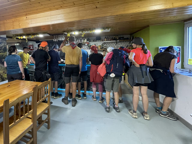 Ich muss den Hospitalero in Schutz nehmen, der gestern trotz angeblich voller Herberge noch drei Frauen eingelassen hat. Die drei konnten bzw. mussten auf den Couches im Aufenthaltsraum schlafen. Das hätte ja niemand gestört, wenn da nicht die nervige Jennifer dabei gewesen wäre, die man im ganzen Haus gehört hat. Zu ihr gesellten sich zum lautstarken und vermutlich belanglosen Quatschen noch eine paar Herbergsgäste, die vom Kneipenbesuch zurückkamen. Da wurde es richtig laut. Einer von denen hat sich dann um halb elf sturzbetrunken in das Bett neben mir fallen lassen und sofort ein grauenhaftes Schnarchkonzert begonnen. Da hat es sich mal wieder als nützlich erwiesen, dass ich auf einem Ohr schwer höre. Ich habe das andere ins Kissen gepresst und schon fehlten ein paar Dezibel. Ich hatte nur Angst, dass er sich übergibt und habe deshalb meine Sachen aus dem potentiellen Spuck-Radius entfernt. Er hat sich tatsächlich übergeben, aber zum Glück nicht am Bett, sondern vor bzw. im Klo. Wie ich heute früh erfuhr, haben die beiden jungen Deutschen aus Augsburg bzw. St. Augustin, mit denen ich am Abend kurz gequatscht hatte, die stinkende Hinterlassenschaft beseitigt. Das rehabilitiert sie dafür, dass heute Morgen noch vor sechs ihr Wecker klingelte.