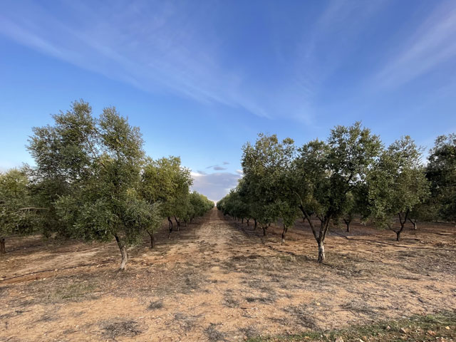 Während ich noch sinniere, wie man am besten die Oliven vom Baum bekommt, höre ich in einer Plantage Motorengeräusche und kann miterleben, wie das derzeit auf kleinen Plantagen passiert: Ein Traktor zieht ein großes Netz durch die Schneise und zwei Helfer legen Teile des Netzes um den abzuerntenden Baum. Dann kommt ein zweiter Traktor, umklammert den Baum mit einer Zange und rüttelt. Zeitgleich schlagen 4…6 Helfer mit langen Stangen auf den Baum ein. Anschließend werden die um den Baum gelegten Teile des Netzes wieder auf das große Netz gelegt und die Traktoren ziehen zum nächsten Baum. Das lässt sich sicher noch mehr mechanisieren, zum Beispiel durch einen Traktor, der selbst ein Netz um den Baum legt, schüttelt und mit irgendwas auf den Baum einprügelt. Aber vielleicht hat das schon jemand erfunden. Wenn nicht, dann wäre das die zweite revolutionäre Erfindung für die Landwirtschaft, die aus Mehrow kommt, nachdem vor 120 Jahren unser Rittergutsbesitzer Robert Stock den selbstfahrenden Motorpflug erfunden hat.