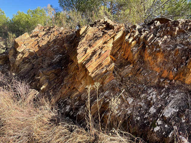 Für den Rest des Nachmittags hatte ich mir noch einiges vorgenommen. Da der Camino von Minas de Riotinto über Campofrío nach Aracena entlang der nunmehr nach Norden führenden A-461 verläuft und im Gebiet der Minen sehr gefährlich sein soll, habe ich mich von Fernando und Juan Carlos überreden lassen, bis Campofrío einen alternativen Weg zu nehmen, der sehr schön und sicherer ist. Damit wäre mir aber der Blick in die Minen beidseits der genannten Straße entgangen, den ich schon auf Bildern bestaunt habe.