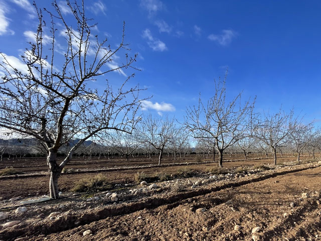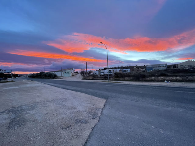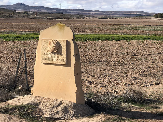 Ich habe in Caudete in der Herberge hervorragend geschlafen. Der Elektroheizer an der Wand hat es geschafft, eine annehmbare Temperatur im Schlafraum zu schaffen. Wenn man aber in den Flur getreten ist, war es dort lausig kalt. Also war es angebracht, bei geschlossener Tür alles einzupacken, sich komplett anzuziehen und dann unten im Aufenthaltsraum die Frühstücksprozedur so kurz wie möglich zu halten. Obwohl ich abends den Stecker des Boilers gezogen hatte, um oben die Heizung einschalten zu können, kam das Wasser noch so heiß aus dem Hahn, dass es für den löslichen Kaffee gereicht hat. Die bereits in Sax gekauften Baguettes waren noch gut brauchbar, die Lätta-Nachahmung, Käsecreme und Kochschinken aus meinem Rucksack sowieso. Ich hab‘ noch schnell ein paar dankende Worte ins Gästebuch geschrieben und dabei gesehen, dass eine Nacht vor mir ein Pilger hier war. Da die Etappen hier praktisch vorgeschrieben sind, wird der wohl bis zum Schluss einen Tag vor mir sein. Anfang Januar war sogar ein Deutscher in der Herberge, überhaupt scheint die ganz gut besucht zu sein. Kurz vor acht bin ich losgezogen und nach wenigen Schritten den Berg runter war ich in der Landschaft, die mich den ganzen Tag begleiten sollte: im Nichts. Aber das klingt so negativ. Im Western sieht man solche Landschaften gern: flaches Land mit spärlichem Bewuchs, eingerahmt von Bergen. Drei Viertel des Weges führten auf einem gewalzten, gut begehbaren Weg vorbei an Olivenhainen, Obstplantagen und später auch an Wein„bergen“. Dazwischen immer wieder Ödland, wo zwischen den allgegenwärtigen Steinen nichts oder nur wildes Gras wuchs. Die meist faustgroßen Steine, die hier auf allen brachen und bewirtschafteten Flächen liegen, legen den Verdacht nahe, dass hier Steine angebaut werden. Wenn sie mal nicht in einer lückenlosen Schicht unter den Oliven- oder Obstbäumen liegen, dann nur, weil sie gerade untergepflügt wurden. Im Herbst sind sie wieder da. Obwohl es nichts Spektakuläres zu sehen gab, hätte das Laufen durch diese karge Landschaft Spaß machen können. Wenn nicht der penetrante Wind gewesen wäre. Der blies vom Morgen bis zum Abend und ist dabei noch stärker geworden. In der Wetter-App gab es eine „mittlere Windwarnung“ wegen Windgeschwindigkeiten von 45 km/h mit Böen bis 80 km/h. Nach meiner Wahrnehmung bin ich von Böe zu Böe geeilt. Es war wirklich schlimm, weil man kaum vorwärts kam. Wo sonst ein Schritt erforderlich gewesen wäre, musste man heute manchmal zwei machen und sich dabei nach vorn stemmen, um nicht umgeschmissen zu werden. Natürlich kam der Wind genau von vorn, aus dem Westen. Gleich nach dem Losgehen kamen ein paar Tropfen runter. Da wäre ich normalerweise ohne Zucken weitergelaufen. Aber da ich der Kälte wegen „lange Männer“ untergezogen hatte, habe ich befürchtet, dass die durch die dünne Wanderhose schnell nass werden und ich dann den ganzen Tag Freude daran habe. Ich habe deshalb schnell den Regenponcho rausgeholt, was wie erwartet dazu geführt hat, dass der Regen sofort aufhörte. Anders als sonst habe ich den Poncho aber nicht wutschnaubend wieder ausgezogen und verstaut, sondern angelassen, weil er einen guten Schutz gegen den Wind und einen zusätzlichen Puffer gegen die mit dem Wind einhergehende Kälte bot. Nach etwa der Hälfte des Weges gab es erstmals eine Abwechslung: eine Straßenkreuzung! Der Weg passiert hier die Straße von Yecla nach Almansa, was mir die erste Rast ermöglicht hat. Die Kreuzung liegt etwas über dem umgebenden Terrain, so dass sich hier eine Böschung fand, an der man sich mal hinsetzen oder besser hinlegen konnte, ohne weggeblasen zu werden. Kaum lag ich da, hielt ein Radfahrer und fragte, ob alles ok sei. Da mir das vermutlich bei jedem Vorbeikommenden passiert wäre, bin ich bald wieder aufgestanden und weitergelaufen. Der Weg war übrigens im ersten Teil sowohl mit der Muschel als Jakobsweg als auch mit einem berittenen roten Elefanten als Camino Anibal (Hannibal-Weg) gekennzeichnet. Hier ist wohl einst Hannibal mit seinen Elefanten langgezogen, um Europa zu erobern. In der zweiten Hälfte gab es nur noch gelbe Pfeile als Wegweiser. Ich bin gespannt, ob ich nochmal dem roten Elefanten begegne. Gegen Mittag nahm der scharfe, kalte Wind nochmal zu. Nun rollten Büsche, die irgendwo ausgerissen wurden, wie Bälle über die Felder und über den Weg. Wäre nicht die Mehrzahl an den Weinstöcken oder den Plantagenbäumen hängen geblieben, wäre das eine regelrechte Invasion geworden. So waren die rollenden Büsche was fürs Foto. Obwohl mir schon längst Beine und Rücken wehtaten, musste ich nochmal alles aus mir herausholen, als es galt, meine Mütze zu retten, die mir der Wind trotz darüber gezogener Kapuze vom Kopf gerissen hat. Auf einem Feld ist die zum Glück an einer Scholle hängen geblieben. Ich werde mir mal beim SEK eine Gesichtsmaske besorgen. Die kann man ggf. auch bei einem Bankraub gut gebrauchen. So etwa 8 km vor dem Ziel stößt der Weg wieder auf eine Straße. Dieses Mal ist es die nach Montealgre, die man ein Stück laufen soll, um dann lt. Karte rechts bzw. ein Stück weiter lt. Ausschilderung links einen parallel verlaufenden Weg zu nehmen. Ich habe Karte und Ausschilderung ignoriert und bin auf der Straße geblieben, nicht nur, um etwas Wegstrecke zu sparen, sondern auch, um nicht allein in der Einöde zu sein, wenn ich nicht mehr weiter kann. Drei Kilometer vorm Ziel zogen dicke, dunkle Wolken auf und da ein etwas verfrühter Regenbogen zu sehen war, war klar, dass es gleich regnen wird. Und das Wetter hat sich an diese Regel gehalten … Den Poncho hatte er ich zwar noch an, aber der hing nur noch am meinem Hals und flatterte wie ein Schal, was wenigstens die Autofahrer veranlasst hat, etwas Abstand zu halten, um den Lack zu schonen. Ich habe also schnell alles wieder arrangieren müssen und konnte dann dem Regen recht gut trotzen. Ganz heroisch habe ich auch das Angebot eines Traktorfahrers a