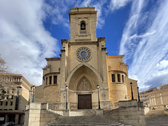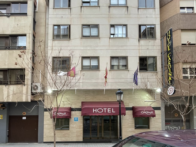Nicht weit hinter der Stadt ist ein großes Gewerbegebiet längs der Autobahn, wo den Holzkisten neben den Hallen nach zu urteilen viele Großhändler von Obst und Gemüse ansässig sind. Der Weg verläuft um das Gewerbegebiet herum und erst ganz am Ende kommt man wieder auf die parallel zur Autobahn verlaufende Service-Straße. Als ich nun hinter den Hallen entlanglief, begann es richtig zu gießen und kein Fluchtweg und kein Unterstand waren gegeben. Wäre ich mal durch das Gewerbegebiet gelaufen, dann hätte sich bestimmt eine Möglichkeit zum Unterstellen gefunden, vielleicht sogar eine „Cantina“. So habe ich erst am Ende des Gewebegebietes eine Halle mit offener Tür gefunden, durch die ich einfach mal geschlüpft bin, um den dicksten Regen abzuwarten. Die Halle gehörte zu einer Firma, die Roboter baut. Drinnen waren ein paar Männer damit beschäftigt, einen speziellen Container herzurichten. Dem vermeintlichen Chef habe ich zugewinkt und zu verstehen gegeben, dass ich da nur ein paar Minuten im Trocknen stehen will. Statt mich wegzujagen, hat er gefragt, ob ich Wasser oder ein Bier haben will - dann hat er aber leider trotz intensiver Suche kein Bier im Kühlschrank gefunden. Trotzdem sehr nett. Als der Regen etwas nachließ, bin ich weitergelaufen, denn ewig nass rumzustehen bringt ja auch nichts. Der Weg führte jetzt auf der asphaltierten, aber sehr löchrigen Servicestraße neben der Autobahn. Da fuhren mehr Autos als erwartet, vermutlich weil die Straße zugleich eine Zufahrt zum Gewerbegebiet ist. Da musste ich immer aufpassen, dass ich nicht gerade neben einem mit Wasser gefüllten Schlagloch oder einer Pfütze stehe, wenn ein Auto kommt. Plötzlich hält neben mir ein von hinten kommendes Auto mit dem Firmenchef, bei dem ich mich untergestellt hatte. Der wollte mich mitnehmen, was ich aber dankend abgelehnt habe, weil das unsportlich ist und weil ich seinen schönen Lexus nicht nass und schmutzig machen wollte. Wie ein Lob für diese Tapferkeit riss plötzlich der Himmel auf und der Regen war vorbei. Ein Regenbogen signalisierte zudem, dass es jetzt auch etwas Sonne geben wird. Es blieb auch bis zum Ziel trocken, aber der Wind nahm stark zu und stellenweise kam ich kaum vorwärts. Der Sturm hat aber dafür gesorgt, dass die Sachen am Leib schnell getrocknet sind. Sogar die Schuhe samt Inhalt waren am Nachmittag fast trocken. Der Weg führte im Wesentlichen bis zum Schluss entlang der Autobahn, bzw. ich bin da weitergelaufen, auch wenn der ausgeschilderte Weg einen Bogen durch die Felder machte. Nach Umwegen war mir bei dem Wetter nicht zu Mute und es war zu sehen, dass auf den aufgeweichten Feldwegen große Pfützen stehen. An einer Stelle hat neben mir ein Auto gehalten und der mit drei Hunden aussteigende Fahrer wollte mich ein paar hundert Meter zurück schicken, weil der Weg ein Stück weiter gesperrt ist. Aber auch zum Zurücklaufen hatte ich keine Lust. Deshalb habe ich trotz seines Kopfschüttelns den Hinweis ignoriert und bin weiter. Tatsächlich war da ein Stück des Weges abgesperrt, vermutlich weil man da ein Regenwasserbecken neben der Autobahn baut. Das Stück ließ sich aber auf den angrenzenden Feldern gut umgehen. Schlamm hatte ich eh an den Schuhen, da hat das nichts ausgemacht. Etwa halb eins war ich in Albacete und ziemlich enttäuscht, dass die recht große Stadt außer ein paar wenigen schönen Fassaden nichts zu bieten hat. Ich hatte wenigstens einen mittelalterlichen Stadtkern erwartet, aber es gab nichts dergleichen. Da, wo ich in die Stadt reinkam, ist ein recht neues, aber ziemlich verdrecktes Wohngebiet mit zwielichtigen Gestalten vor den Haustüren. Gegenüber ist eine Müllhalde, in der gerade zwei Polizisten dabei waren, die aus Müll gefertigten Behausungen zu kontrollieren. In Richtung Innenstadt wurde es dann ordentlicher, aber wie gesagt leider nicht schöner. In Albacete bin ich zunächst ins Rathaus gegenüber der Kathedrale um nach der Herberge zu fragen. Dort hat man mich in das „Centro de Atención Integral a Personas sin Hogar“, also das „Zentrum für die umfassende Betreuung von Obdachlosen“ geschickt, wo sich auch die Herberge befinden soll. Das ist zehn Minuten entfernt im Südosten der Stadt und liegt fast an dem Weg, den ich gekommen bin. In diesem Zentrum gibt es Schlafgelegenheiten für Obdachlose, aber auch kostenfreie Duschmöglichkeiten, eine Essenausgabe und eine Wäscherei. Außerdem steht der Flur voller Spinde, in denen die Obdachlosen ihre Sachen verstauen können. Im Haus stand auch eine ziemlich lange Schlange auf dem Flur, vermutlich um zu duschen. Der Pförtner hat mir erklärt, dass es auch zwei Betten für Pilger, Wanderer etc. gibt (weshalb das Zentrum auch gelistet wird, wenn man nach „Herberge in Albacete“ sucht). Diese zwei Betten werden aber erst um 16.30 Uhr vergeben und können nicht reserviert werden. Bis dahin waren noch drei Stunden Zeit, die ich in einem Einkaufszentrum im KFC und mit einem Stadtbummel bis zur Stierkampfarena verbracht habe. Für dringende Angelegenheiten habe ich dieses Mal leider kein Hospital mit einer Tür für „Urgencias“ gefunden, aber eine „Toilette für Professoren“ in einer offen stehenden Schule. Um ehrlich zu sein: auf einem Professoren-Klo sitzt es sich auch nicht besser als auf einem normalen Klo. Um zwanzig nach vier war ich wieder am Obdachlosenzentrum und habe erfahren, dass die zwei Betten schon vergeben sind. Ganz sicher nicht an Pilger. Aber wenn da zwei wirklich Bedürftige eine Schlafstätte gefunden haben, dann soll mir das Recht sein. Der Herr sagte mir noch, dass ich es um halb zehn nochmal probieren könne, denn manchmal bleibt ein Bett frei, weil jemand doch draußen übernachtet. Das fand ich aber alles nicht so verlockend, weshalb ich das Smartphone gezückt, booking.com aufgerufen und das letzte 44 €-Zimmer im Hotel „Cardinal“ gebucht habe. Das nicht weit weg vom Plaza de la Mancha gelegene Hotel erwies sich dann als deutlich 