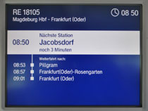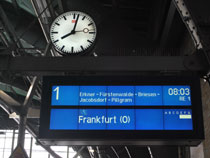 Es ist ein schöner Tag Ende August 2014 und die erste Etappe des Pilgerweges Frankfurt (Oder) - Bernau steht auf dem Programm. Nach Frankfurt zu kommen, ist kein Problem - da fährt stündlich ein Regionalexpress und während der Semesterferien ist der auch nicht überfüllt. Sonst kann man in dem Doppelstockzug Unmengen an Viadrina-Studenten antreffen, die zwischen Berlin und ihrem Studienort pendeln. Wer an der Bahnlinie wohnt, ist mitunter schneller an der Frankfurter Viadrina, als an einer der Berliner Universitäten. |