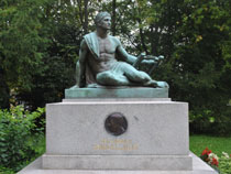 Der flotte Typ mit Ehrenkranz und Kinder-Harfe (oben in der Mitte) soll an den berühmten Dichter erinnern, der von 1777 bis 1811 gelebt hat.