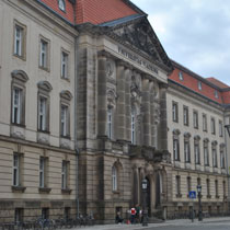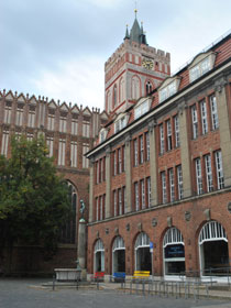 Ein Stück weiter nördlich an der Ecke Linden-/Logenstraße steht zu Füßen des Oderturms das Gebäude der Frankfurter Hauptpost, das 1899-1902 auf Veranlassung des Generalpostmeisters Heinrich von Stephan erbaut wurde. | ![]() |