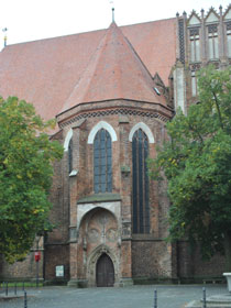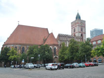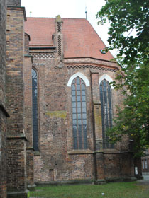 Die im zweiten Weltkrieg stark zerstörte Kirche wurde nach notdürftiger Instandsetzung 1974 an die Stadt verpachtet, die 1979 mit der Rekonstruktion begann. Seit 1998 besitzt die Kirche den größten Holzdachstuhl, der im 20. Jahrhundert errichtet wurde. Und seit 2009 sind auch wieder die drei zwischen 1360 und 1370 entstandenen Bleiglasfenster zu bestaunen, die im Krieg ausgebaut und nach Kriegsende als Beutekunst in die Sowjetunion verbracht wurden. |