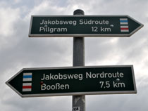 Wir sind hier also richtig - auf dem (oder besser „einem“) Jakobsweg, der von jenseits der Oder kommt und über Berlin weiter gen Westen führt und zusammen mit vielen anderen Jakobswegen im spanischen Santiago de Compostela endet.