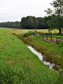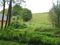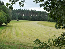 Irgendwann ist auch der größte Wald zu ende. Jenseits des Waldrandes trifft man auf grüne Wiesen und Felder. | ![]() |