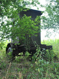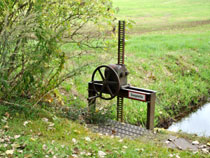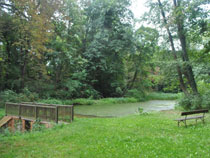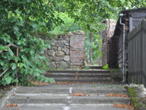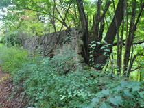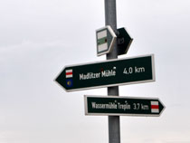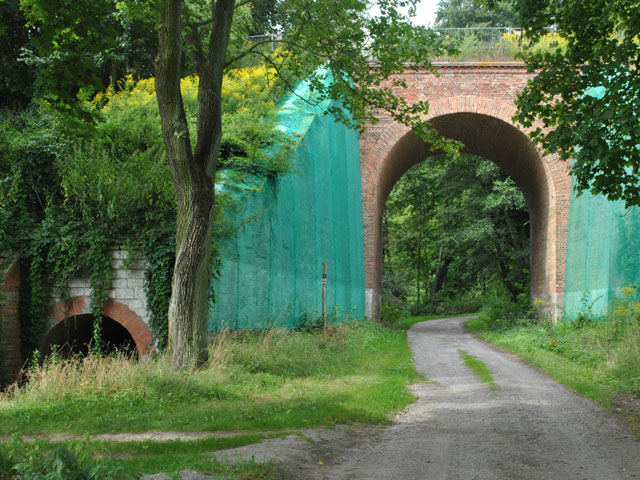 Das war mal die Ragoser Mühle und der Mühlenteich befand sich links neben dem Grundstück. Ein paar Meter weiter, kurz bevor der Weg die Landstraße mit dem Oder-Neiße-Radweg quert, lädt eine Bank zum Verschnaufen ein. Auf der anderen Seite der Landstraße heißt unser Weg „Sandfurt“ und führt durch eine Wochenendsiedlung. Nach 200 Metern steht der Wanderer plötzlich vor einem Viadukt, über das früher die Eisenbahnlinie von Frankfurt nach Lebus führte. | ![]() |