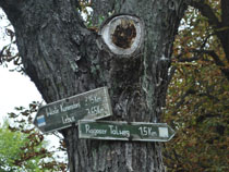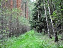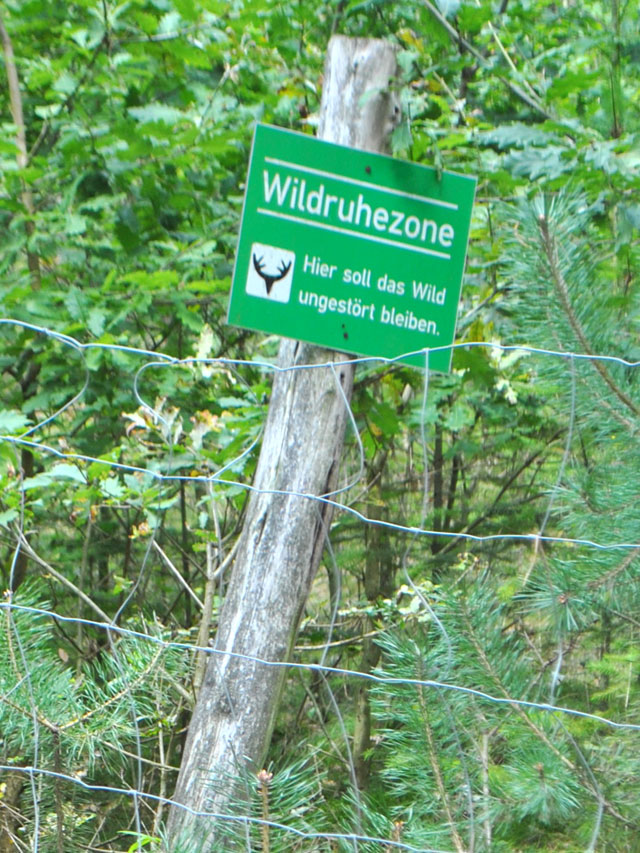 Dann taucht der Weg in einen dichten Wald ein, wo er nicht befahren werden darf. Das sichert dem Wanderer neben der fast vollkommenen Ruhe auch Staubfreiheit. Ein großer Teil des Waldes ist sogar als Wildruhezone deklariert. | ![]() |