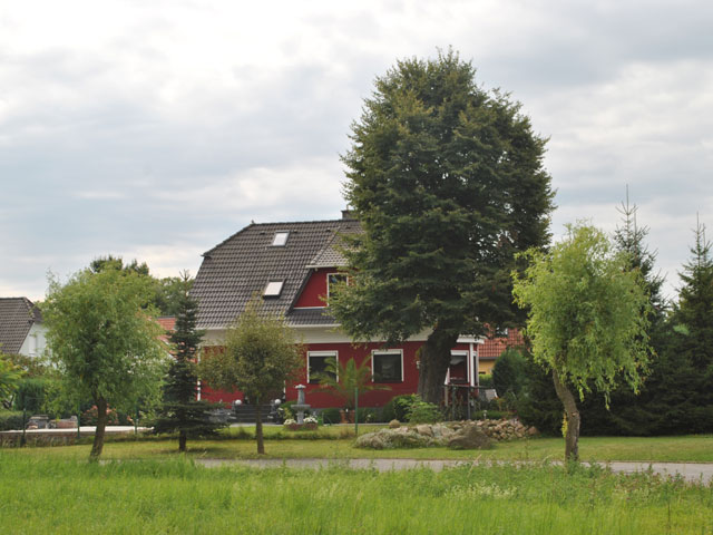 Wieder zurück auf der Berliner Straße in Richtung Ortskern stößt man nach wenigen Metern rechts auf ein dicht an der Straße stehendes Haus, bei dem es sich unverkennbar um ein Chausseehaus handelt.