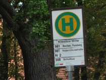 Vom Busbahnhof, das heißt von der Haltestelle in der Wendeschleife hinter dem Gemeindezentrum geht es mit dem Bus nach Müncheberg, mit der aus Küstrin kommenden Regionalbahn nach Lichtenberg und mit der S-Bahn nach Hause.