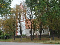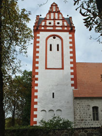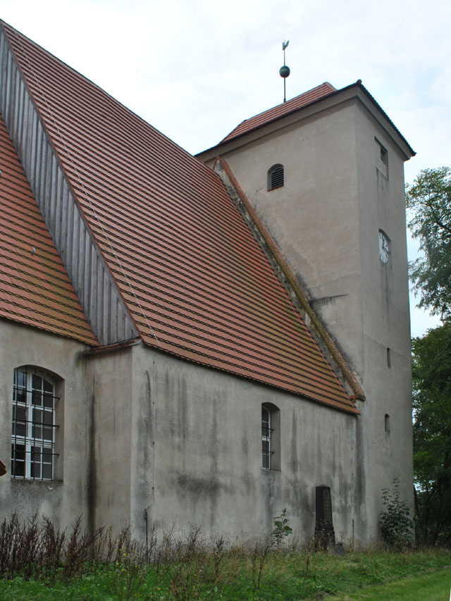 Die aus dem 13. Jahrhundert stammende Kirche wurde im 18. Jahrhundert umgebaut. Der Turm bekam einen verputzten Backsteinaufsatz und eine barocke Haube.