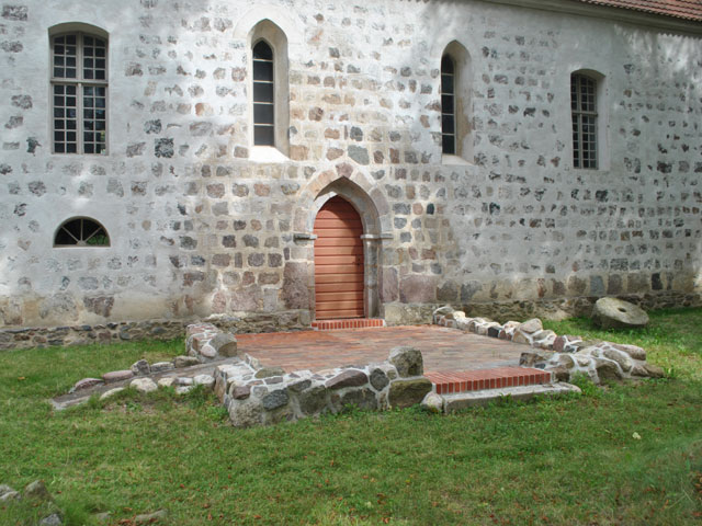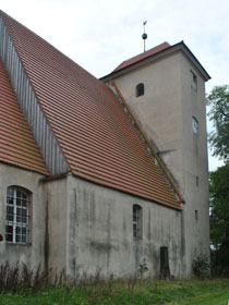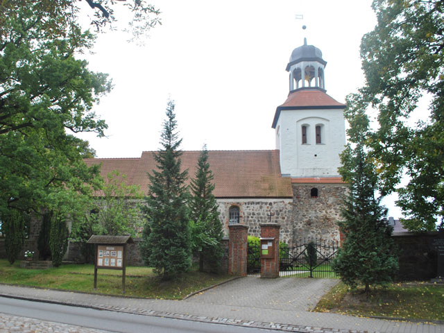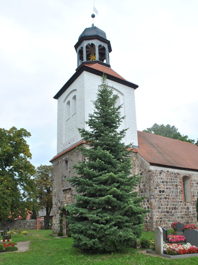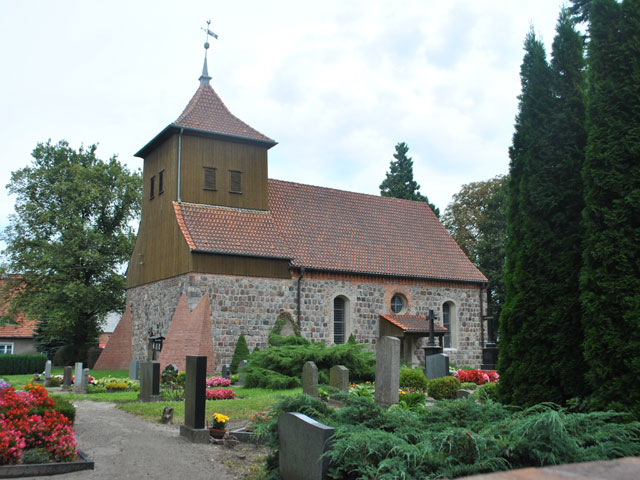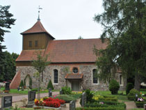 Die Kliestower Kirche fällt nicht sofort ins Auge, da sie sich hinter recht hohen Bäumen verbirgt. Es ist ein Feldsteinbau aus der zweiten Hälfte des 13. Jahrhunderts. |