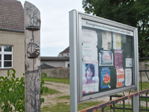 Der Fahrplan an der Bushaltestelle verrät, dass noch etwas Zeit bis zum nächsten Bus nach Müncheberg ist, also Gelegenheit zur Ortsbesichtigung besteht. | ![]() |