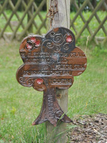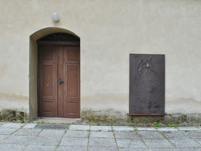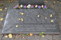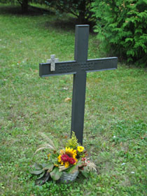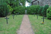 Neben der Kirche trifft man auf eine Gedenkstätte für die Opfer des 2. Weltkrieges: Eine Tafel mit den Namen der Verstorbenen und einige gusseiserne Grabkreuze.