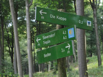 Der Abstecher zum Findling „Kappe“ muss mal ausbleiben, denn es ist schon weit nach Mittag und die Frankfurter Stadtgrenze ist immer noch nicht erreicht. Erst ein paar Hundert Meter weiter verlässt man den Stadtwald. | ![]() |