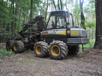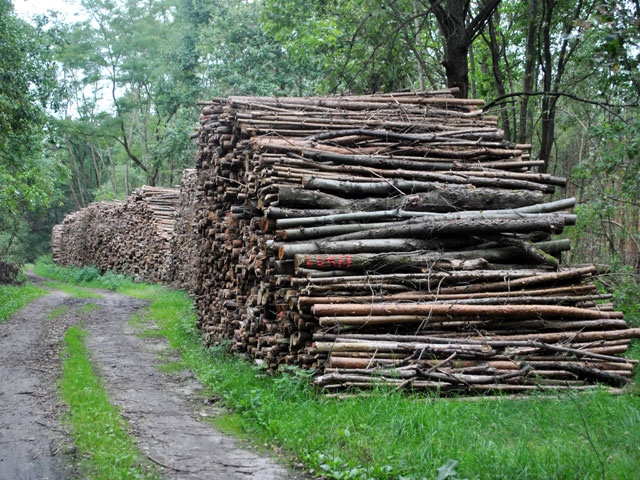 Bald hinter Sieversdorf taucht der Weg in einen Wald, in dem eifrig Holzwirtschaft betrieben wird. Bei nassem Wetter kann das leider zu matschigen Wegen führen. Aber die Harvester sind ja hier nicht auf Dauer unterwegs. |