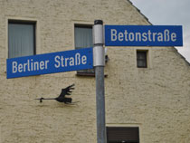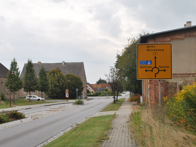 Die vom Kreisverkehr nach Seelow führende Straße trägt den romantischen Namen „Betonstraße“. Das regt zum Schmunzeln an, aber wenn man aus einem Ort kommt, wo „Sackgasse“ auf einem Straßenschild steht, sollte man sich mit seiner Häme zurückhalten.