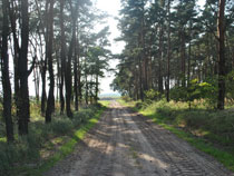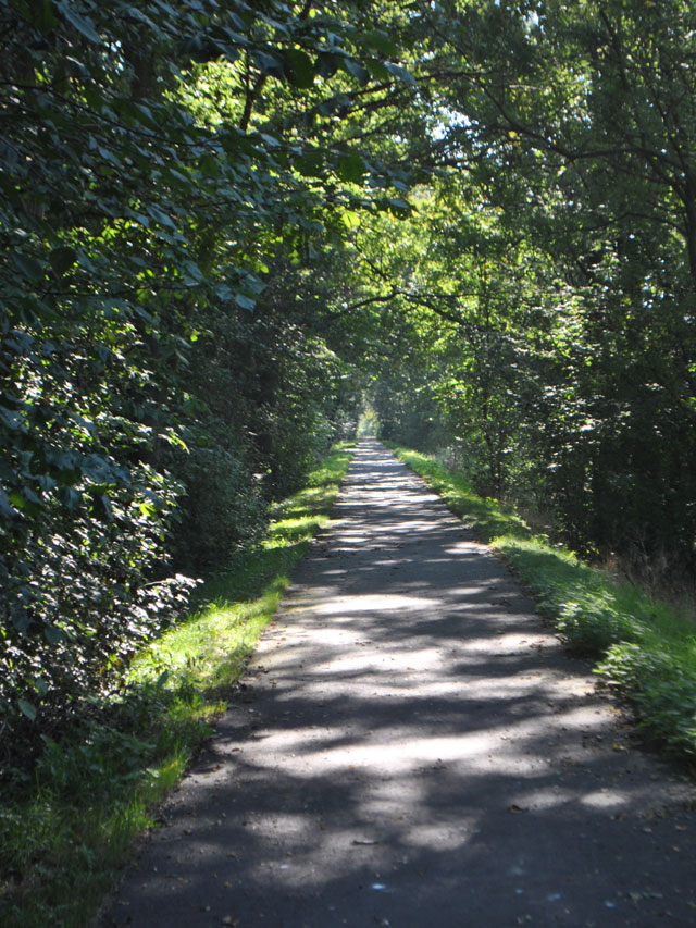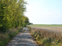 Weiter geradeaus käme man direkt nach Müncheberg, aber der Jakobsweg biegt links, dann wieder rechts ab.