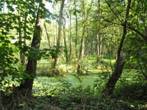 Wenn man so in Gedanken versunken vor sich hinläuft, ist man verwundert, wenn plötzlich zwischen den Bäumen eine Mühle auftaucht, die noch dazu einen äußerlich sehr intakten Eindruck macht. Wie es innen aussieht, ist nicht bekannt. | ![]() |